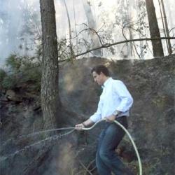 Non hai outra bandeira que Veiga non saiba axitar: a do localismo rancio e patético; ese que practicou cando, rodillo en ristre, lle deu por despintar unha raia ‘provocadora’ na praza Marqués de Valterra cun ‘look’ tan elegante como informal a base de camisa branca, pantalón fino e zapatos lustrosos, prescindindo do mono de traballo que calquera operario lle puidera ter prestado para que o paripé resultara máis efectista. Corría o ano 2009. Tres anos antes, cunha pinta moi parecida á súa, Núñez Feijóo saía nas fotos cunha mangueira amagando sofocar un dos miles de incendios que asolaban Galicia naquel infausto verán.