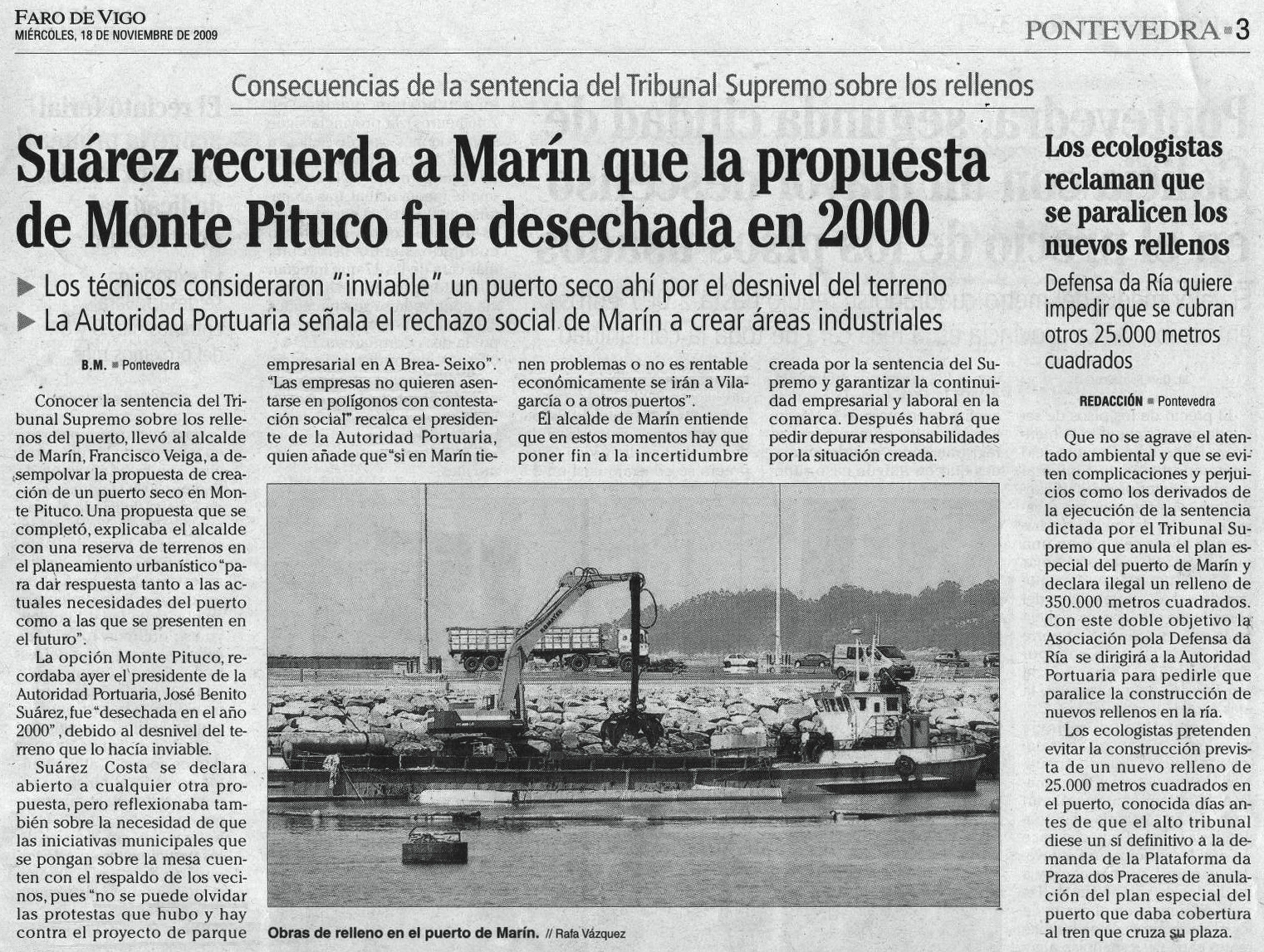 Faro de Vigo, 18 de novembro de 2009.