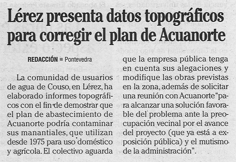 Carlos Morgade, presidente da Comunidade de Montes de Mourente, que rexeita o trazado da rede de subministro de auga proxectado por Acuanorte ao seu paso pola parroquia, debido á afección sobre un espazo no que se atopan un castro e unha mámoa sen excavar. Declaracións ao Diario de Pontevedra, 15 de xaneiro de 2013.