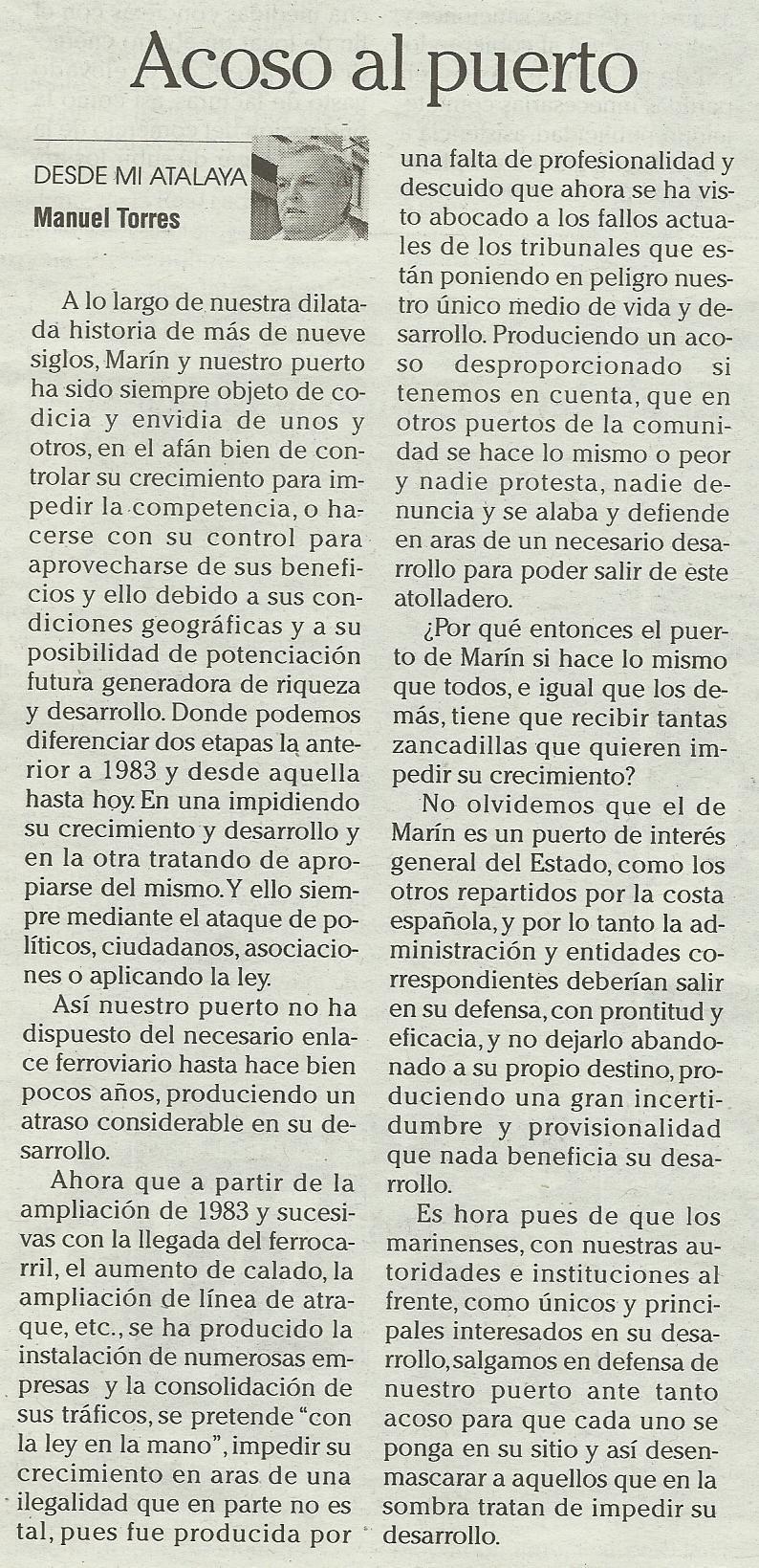Que xurdan colectivos a prol do porto, como no seu día xurdiu unha plataforma pro-polígono, é unha decisión que merece respecto, sempre e cando as normas do “xogo” sexan as mesmas para toda a cidadanía, é dicir, conforme á lexislación, como non podía ser doutra maneira. Do contrario, en desigualdade de condicións, a lei que primaría sería a do máis forte en materia económica e/ou política. Mais os tempos dese rodillo implacable, en principio, forman parte do pasado; agora suponse que prevalece o Estado de Dereito, tanto para o que nos beneficia como para o que nos perxudica.