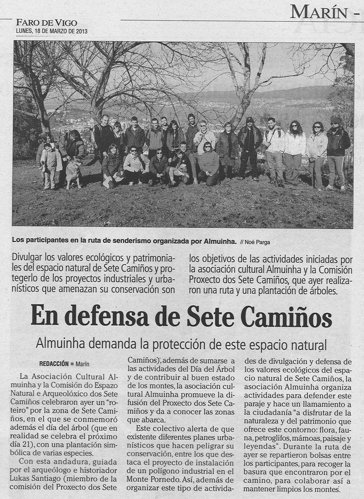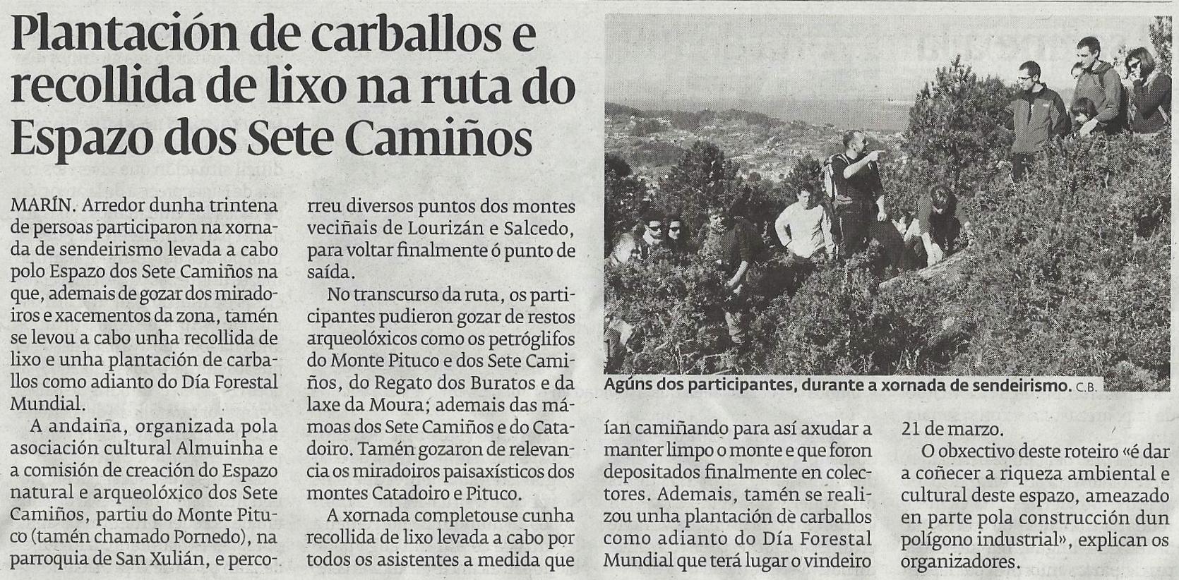 Publicado en Accións, Hemeroteca, Xeral | Etiquetas: 7Camiños, Colectivos sociais, Medio ambiente, Monte veciñal, Patrimonio rupestre, Prensa