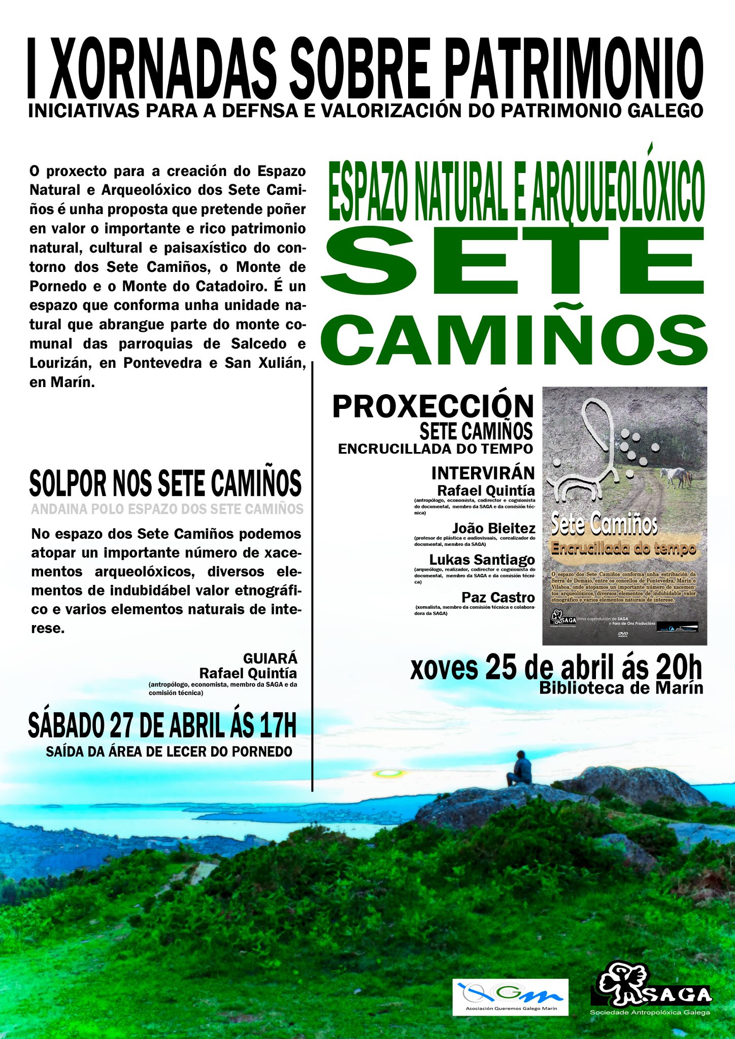 Mañá ás 20:00 horas na Biblioteca Municipal de Marín proxectarase o documental “Espazo Natural e Arqueolóxico dos Sete Camiños: Encrucillada do tempo”. Trátase dun traballo audiovisual que pretende defender e poñer en valor o patrimonio histórico, cultural e medioambiental dunha área xeográfica que abarcan os montes de Salcedo e Lourizán en Pontevedra, e San Xulián en Marín. Nesta última zona, como vimos denunciando nos últimos anos, está proxectada a instalación dun polígono industrial que lle afecta ao Monte Pornedo (ou Pituco), incluido nos Montes do Morrazo, catalogados como Espazo Natural Protexido. Lonxe de preservalo e coidalo como lle correspondería ao rango de protección que se lle deu a través das Normas Subsidiarias e Provinciais de Planeamento; lonxe de velar polos petróglifos e mámoas que se atopan na súa contorna e de proxectalos como recurso turístico e educativo; lonxe de desenvolver para este lugar un plan de explotación forestal respectuoso e sostible, o Goberno local e a Xunta pretenden arrasar con toda esta riqueza, destrozando o medio no que habitan especies de fauna e flora protexidas e privando a veciñanza de seguir abastecéndose dos acuíferos naturais existentes no seu subsolo, cunha obra que provocará un impacto visual brutal irreparable en plena fachada litoral de Marín. E co consentimento da Comunidade de Montes da parroquia, que trala excusa demagóxica da crise e do paro, evidencia un afán de enriquecemento que xa vén de tempo atrás: a liña de alta tensión, a variante…