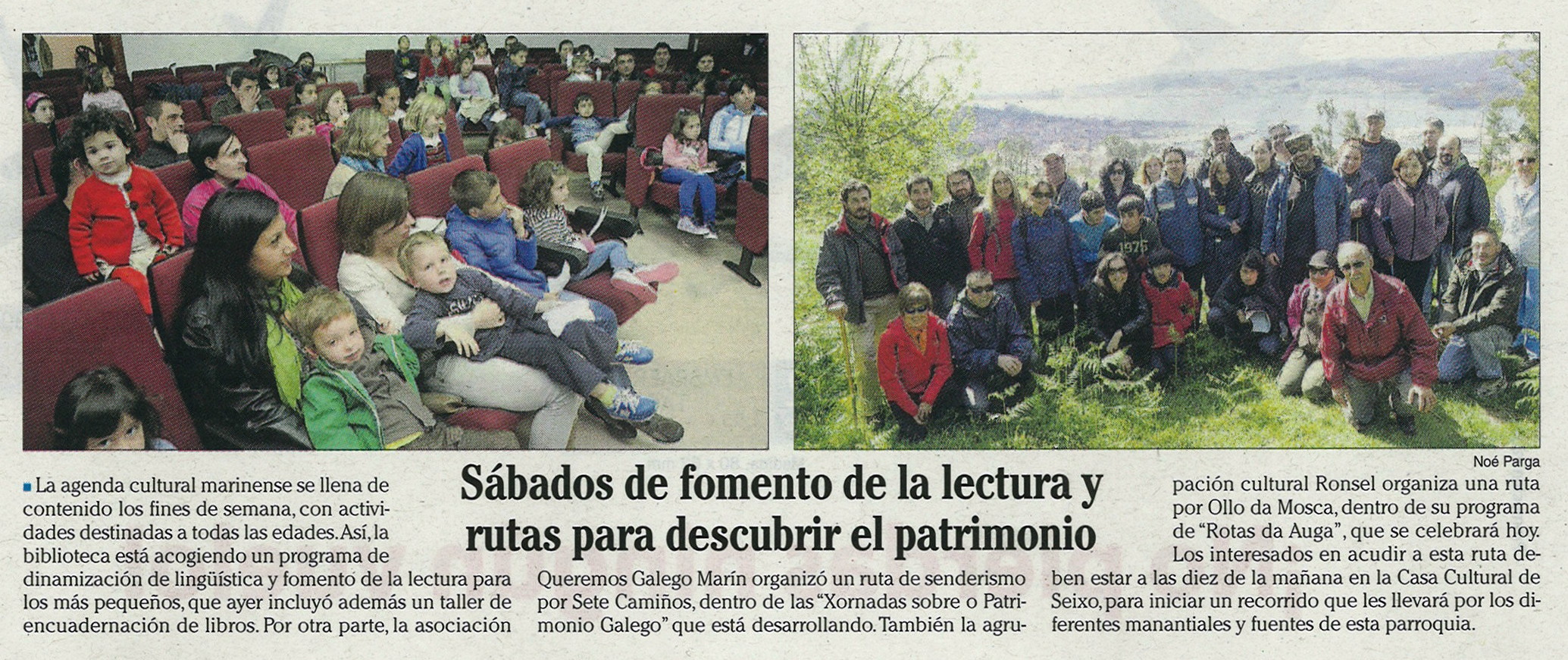 Foi un roteiro cheo de interés polo variado patrimonio arqueolóxico que se atopa en toda esa zoa, petroglifos, mámoas, que maxistralmente foron interpretadas por un excelente guía, fontes con auga de manantial moi saborosa, unhas vistas panorámicas fermosísimas e moitas historias e lendas misteriosas de toda a zona que foron escoitadas con gran expectación. Foron catro horas de roteiro que máxicamente pasaron voando e quedamos con ganas de volver. Dou as grazas aos organizadores Asociación Queremos Galego Marín por todo o traballo feito nas xornadas antropolóxicas levadas a cabo e por suposto a un guía dunha calidade cultural e humana, tan grande como a copa dun pino, esto é o que se di, aínda que eu prefiro dicir como a copa dun carballo, refírome ao presidente da Sociedade Antropolóxica de Galicia, Rafa Quintía. Por todo o que vivín e descubrín, o Proxecto dos Sete Camiños, páreceme dunha gran responsabilidade cultural e que non so débese defender, senon conseguir. Valentina García Abalo