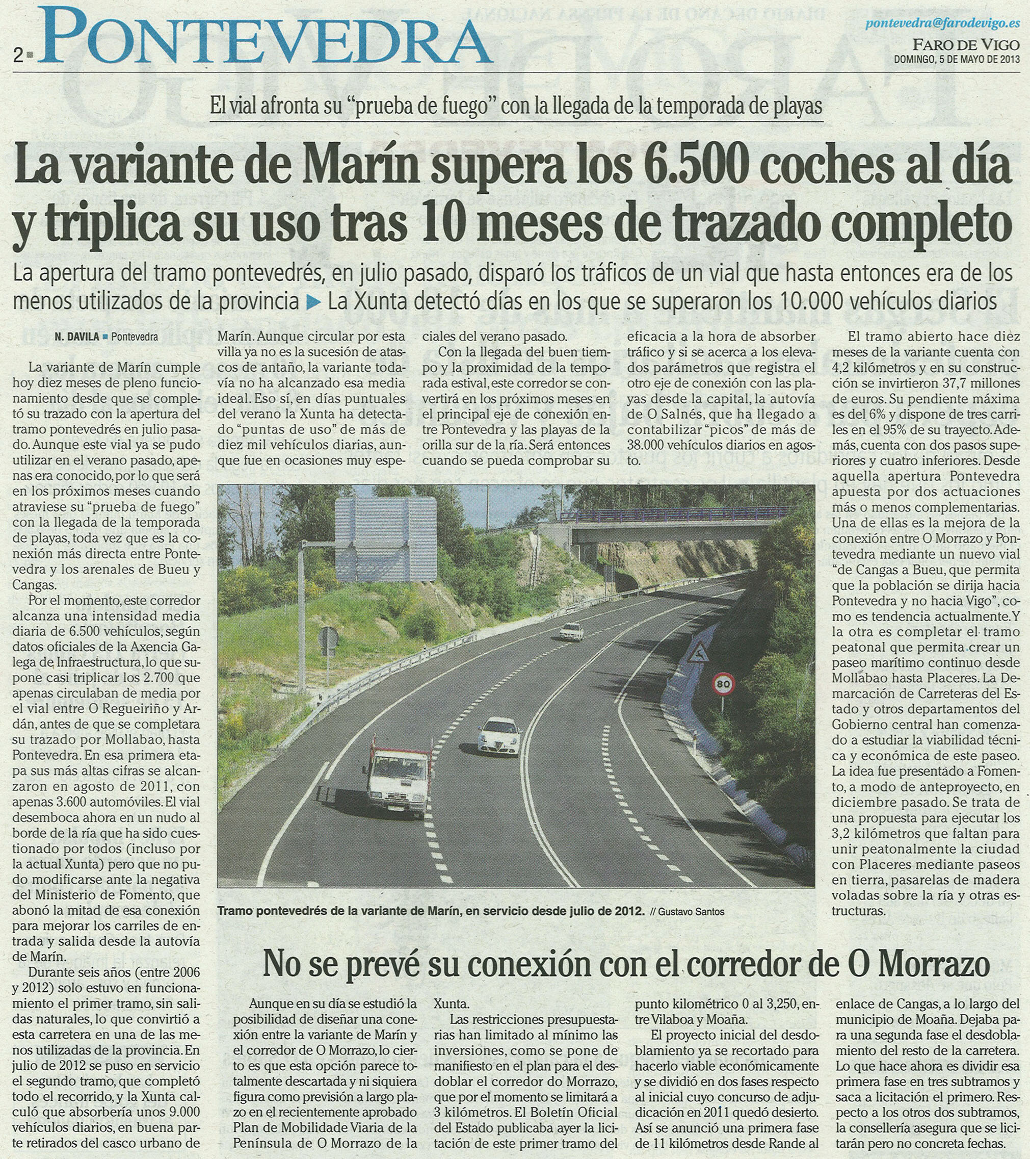 Con 10 meses en pleno rendemento, pode que a variante de Marín venza, pero non acaba de convencer. Certamente, reduce o tempo de conducción dende Marín a Pontevedra e viceversa. Pero non ofrece moita confianza un vial destas características que -con sinais triangulares de perigo-advirte aos usuarios da posibilidade de atopar animais ceibes na calzada. Non hai moito había un raposo atropelado enriba do asfalto. Onte había un equipo de operarios traballando na reparación do valado metálico lateral. Unhas horas despois, nese mesmo punto, había outro becho morto.