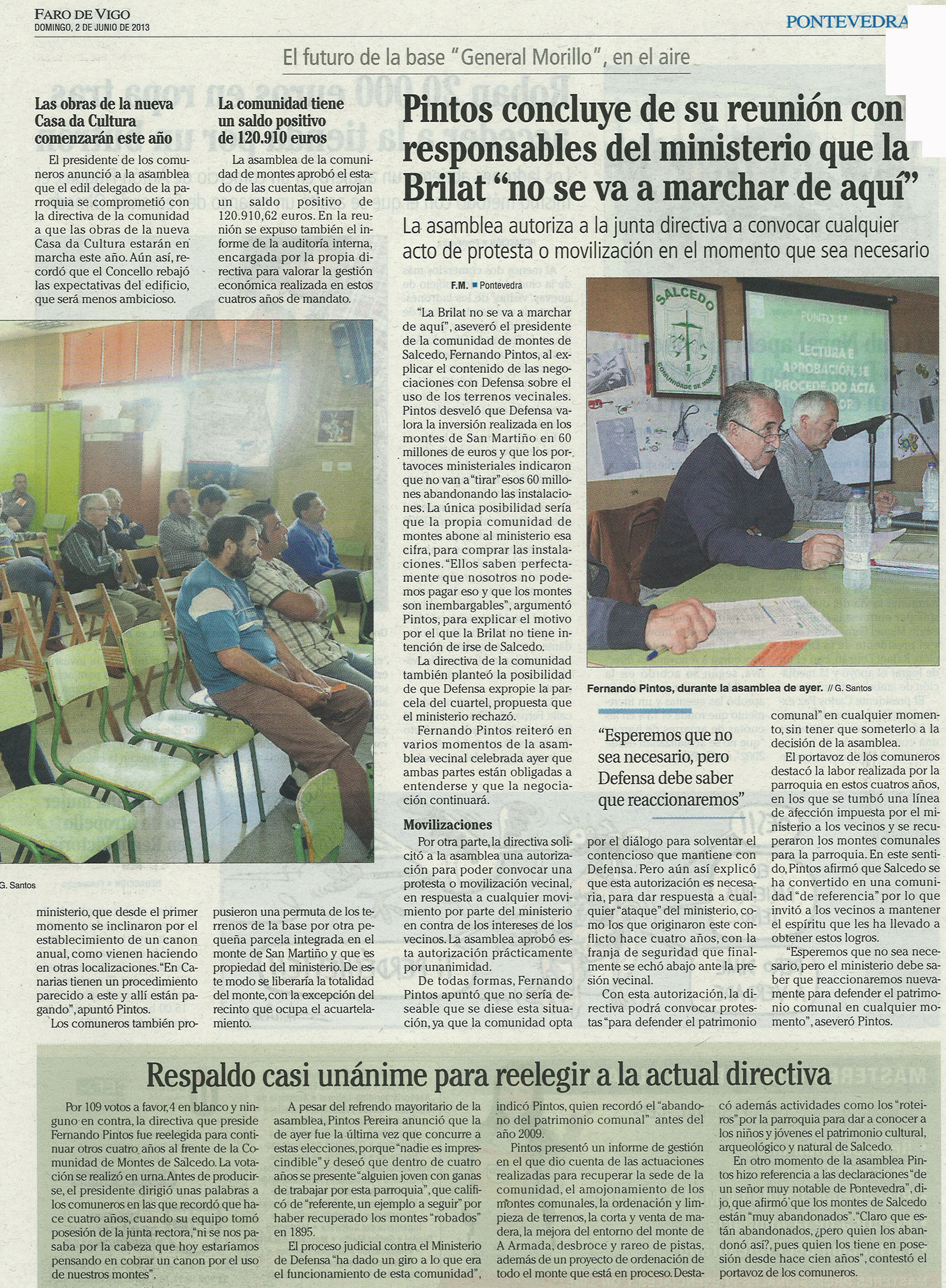 …Sen asemblea nin contacto previo cos comuneiros, a Comunidade de Montes de San Xulián xa lle dixo “amén” ao Ministerio de Defensa sobre a cesión dunhas 35-40 hectáreas para a base militar da Brilat. A esta xunta directiva non lle quedaba outra, habida conta da ríxida filiación política dos seus membros máis destacados, que farán o que o PP lles mande sempre e en todo lugar.