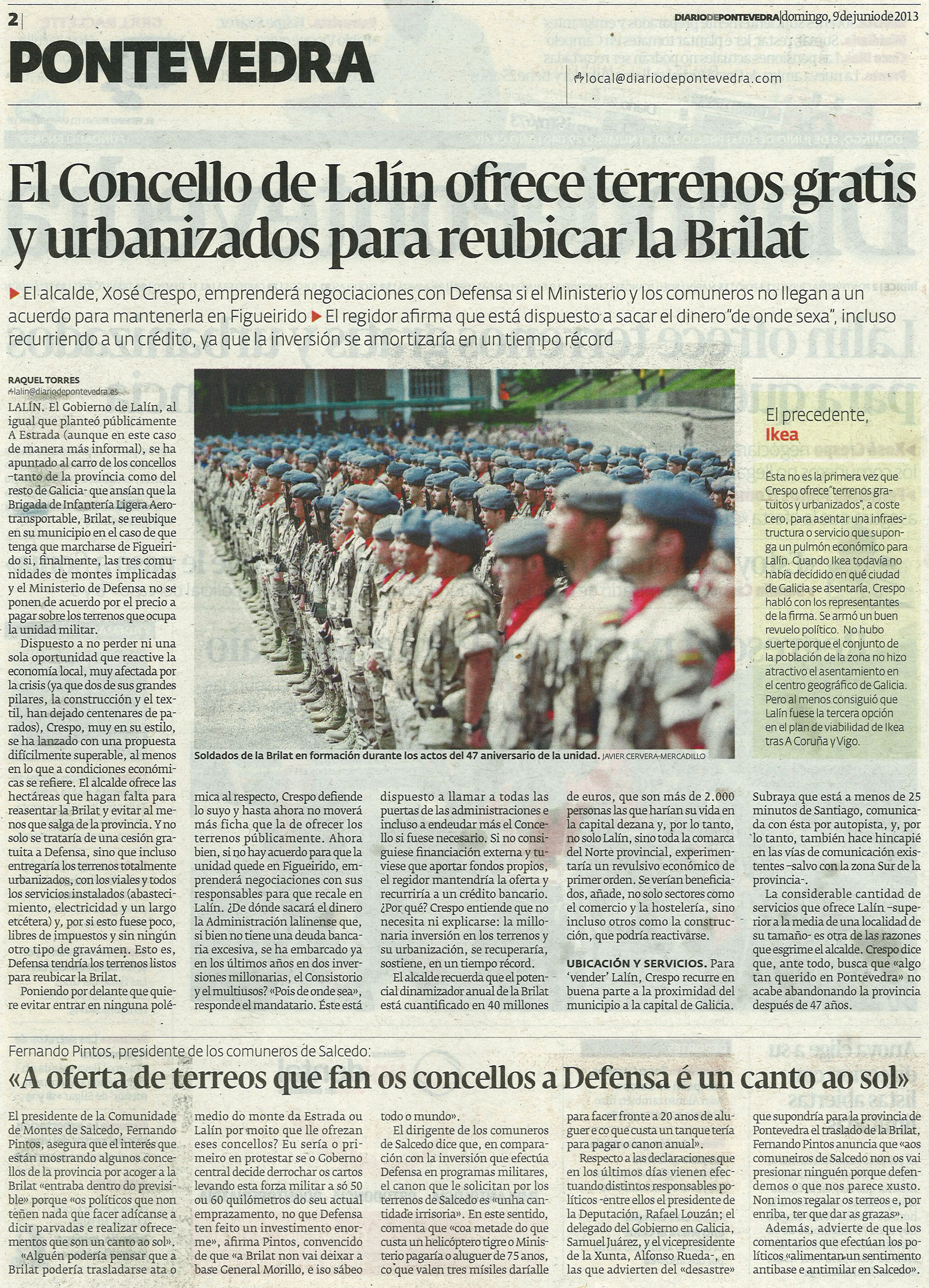 No último fin de semana, cando máis páxinas teñen que cubrir os medios de comunicación impresos, as informacións sobre concellos que lle ofrecen terreos de balde á Brilat mestúranse con editoriais xornalísticos e artigos de opinión.