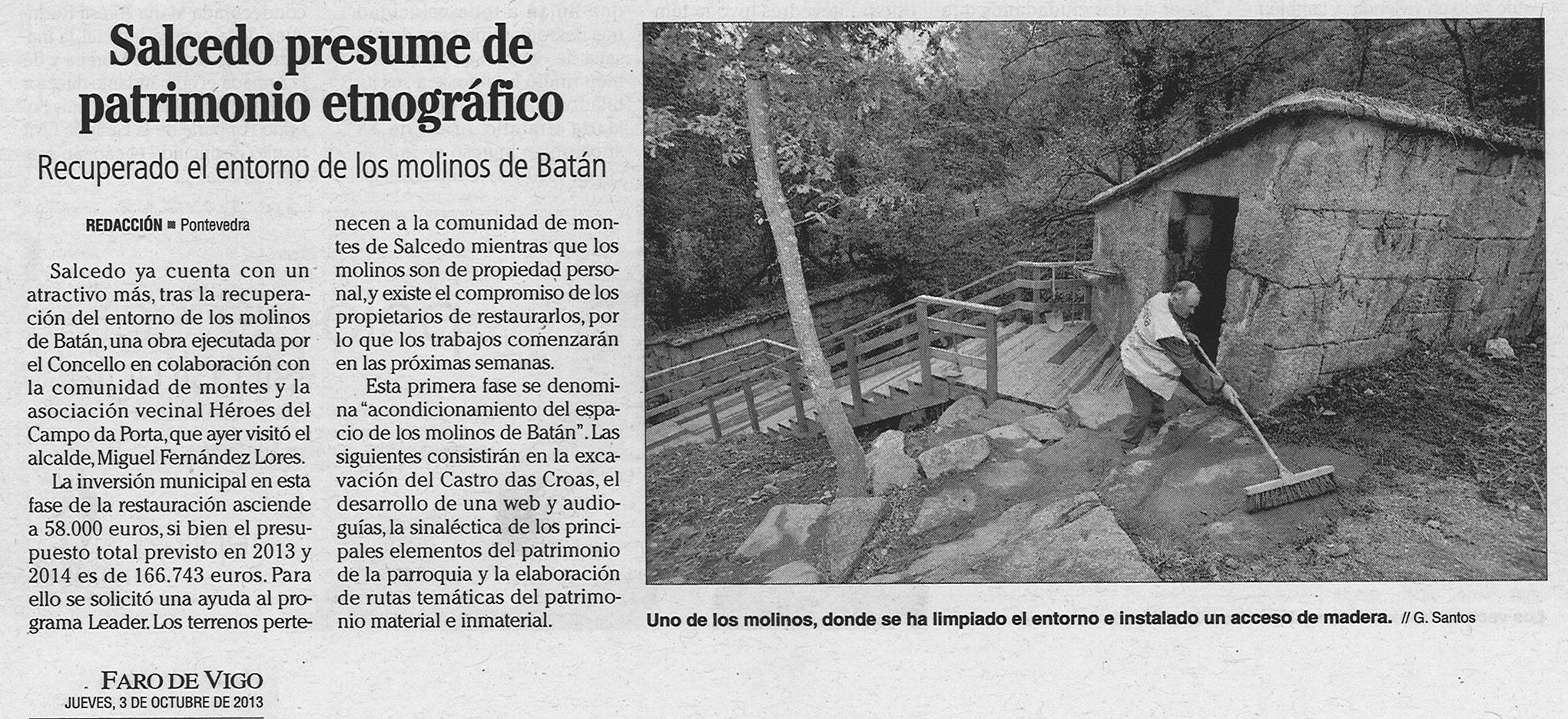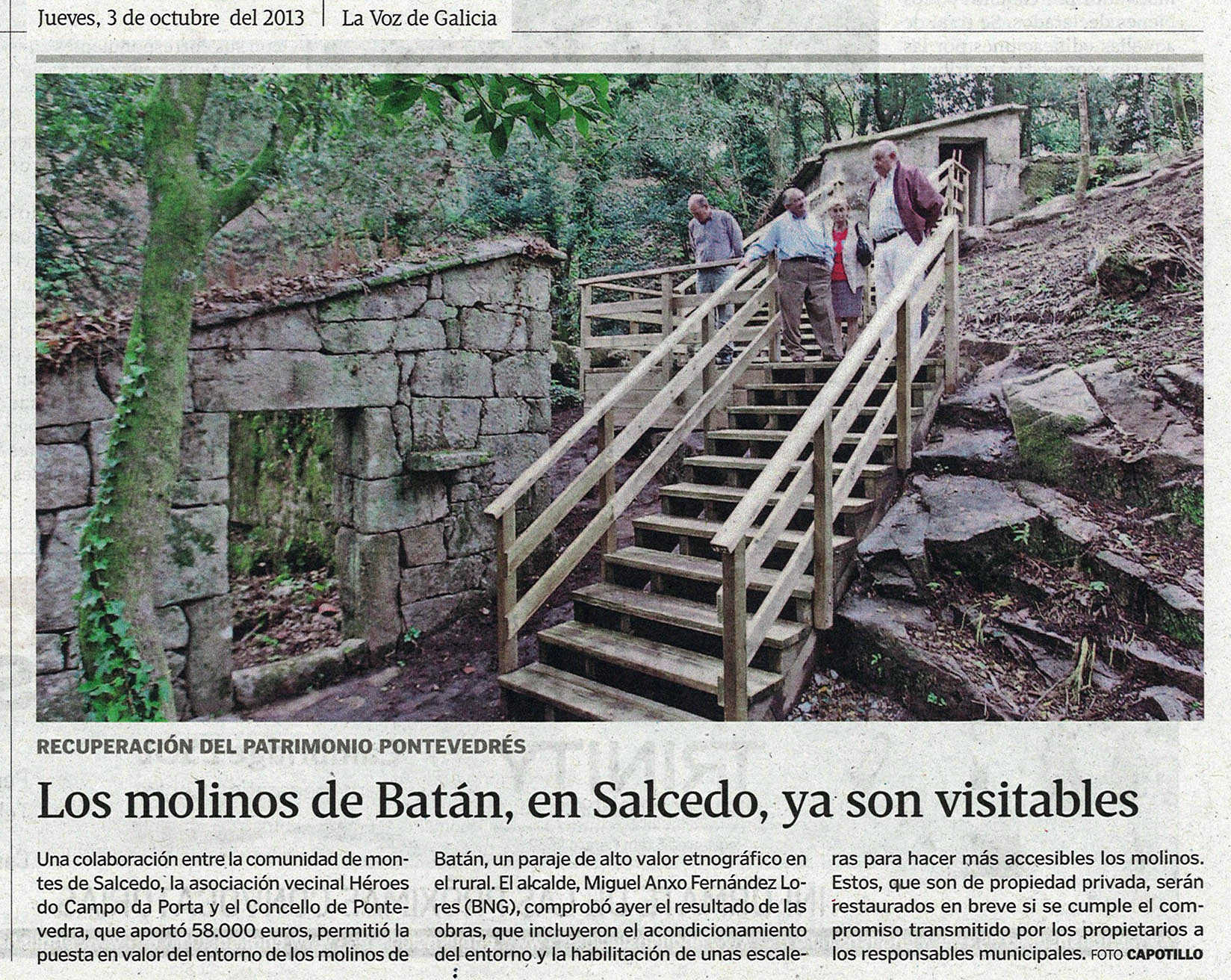 1. […] de maquía. A maior parte dos muíños están abandonados e en desuso, pero varios deles foron restaurados e postos en valor pola veciñanza de Salcedo no ano 2014, coa colaboración da Comunidade de Montes da […]
