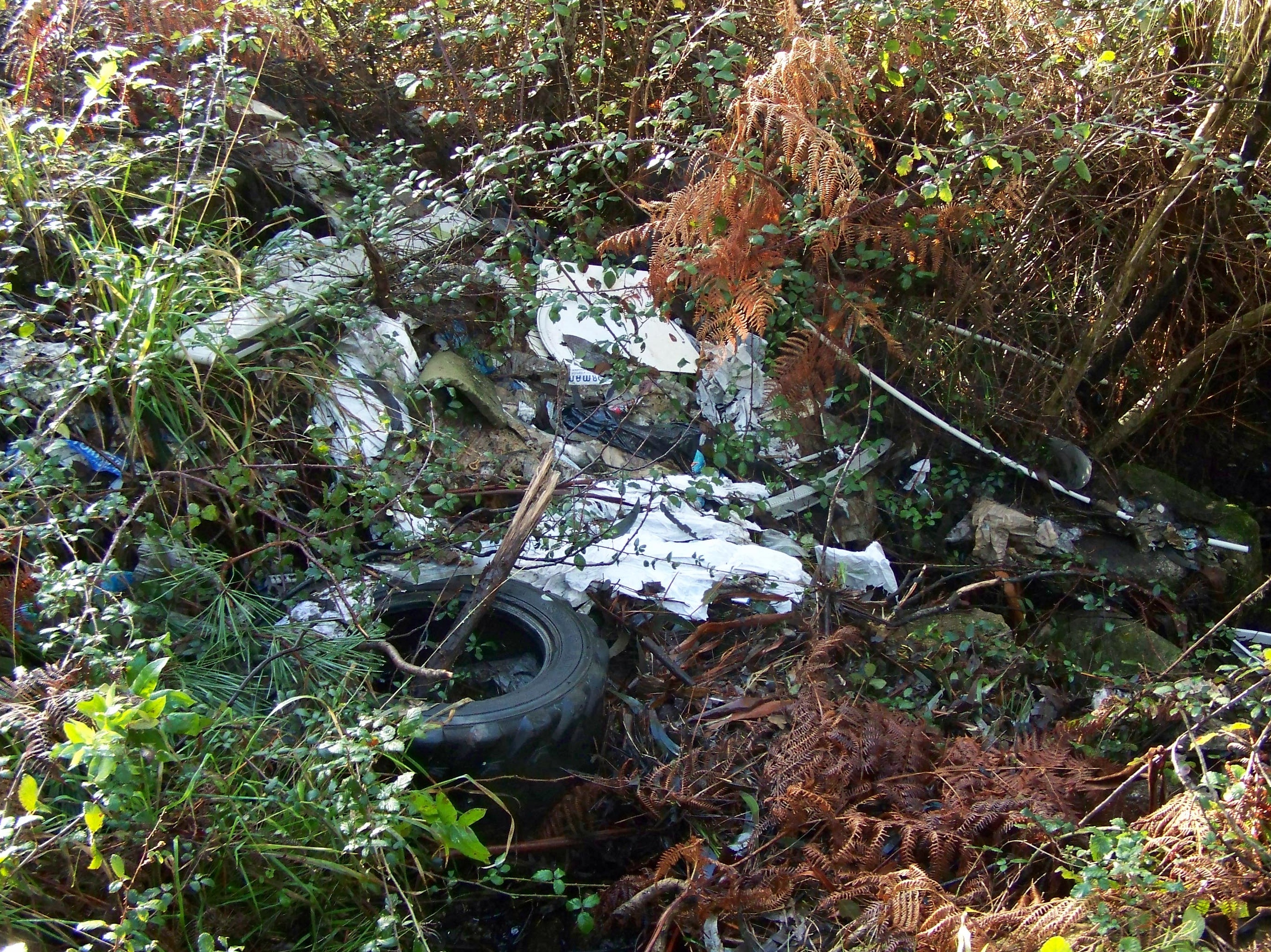 UN ANO DESPOIS de incoarse ese expediente sancionador, dito verquido non só non foi retirado, senón que a súa presenza xerou un “efecto chamada” para que outros desaprensivos sigan depositando neste punto máis refugallos, como se pode apreciar na imaxe que segue, tomada no mesmo lugar este pasado 19 de xaneiro, e na que se aprecia que a vexetación vai camiño de cubrir o lixo, “consolidando” o verquido cos efectos negativos que acarrea semellante foco contaminante.