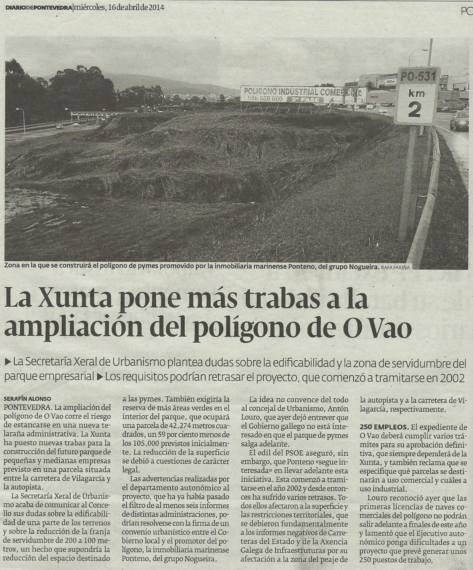 Diario: La Xunta pone más trabas a la ampliación del polígono de O Vao