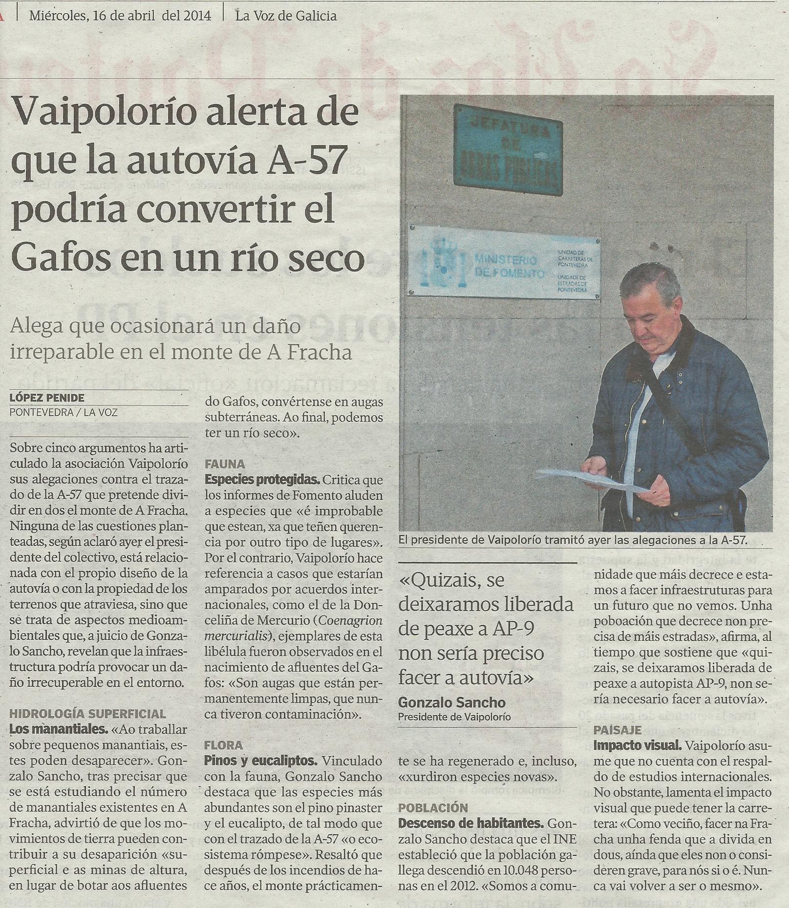La Voz: Vaipolorío alerta de que la autovía A-57 podría convertir el Gafos en un río seco