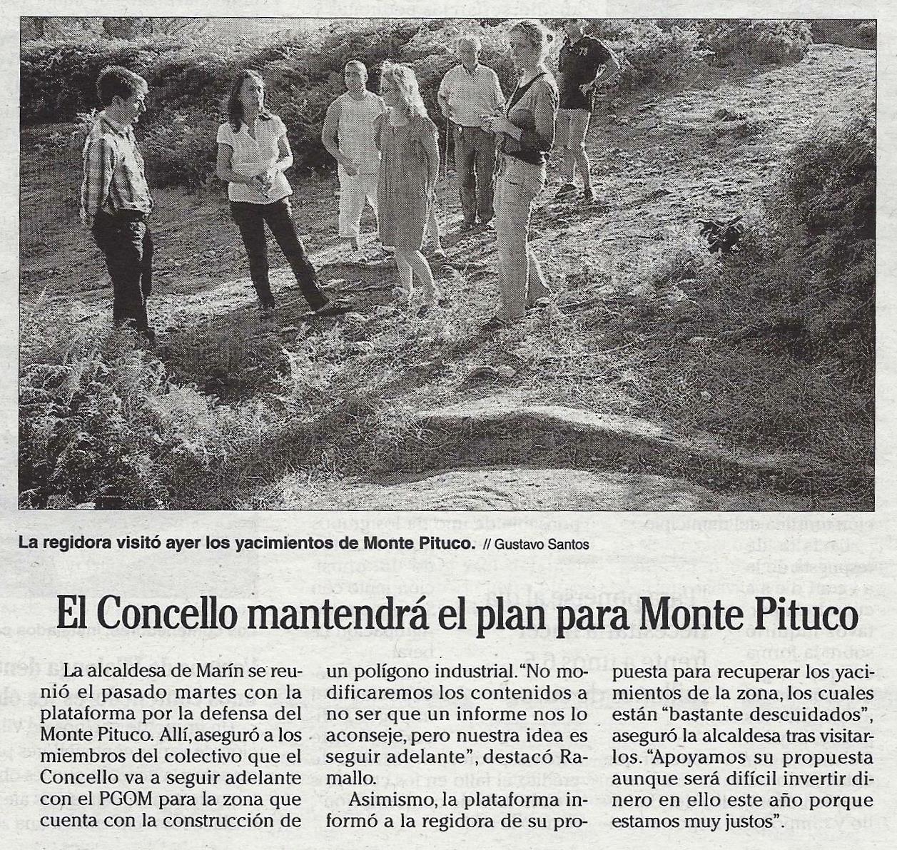 [Noticia da primeira e única visita de María Ramallo ao Monte Pituco, en xullo de 2011]
