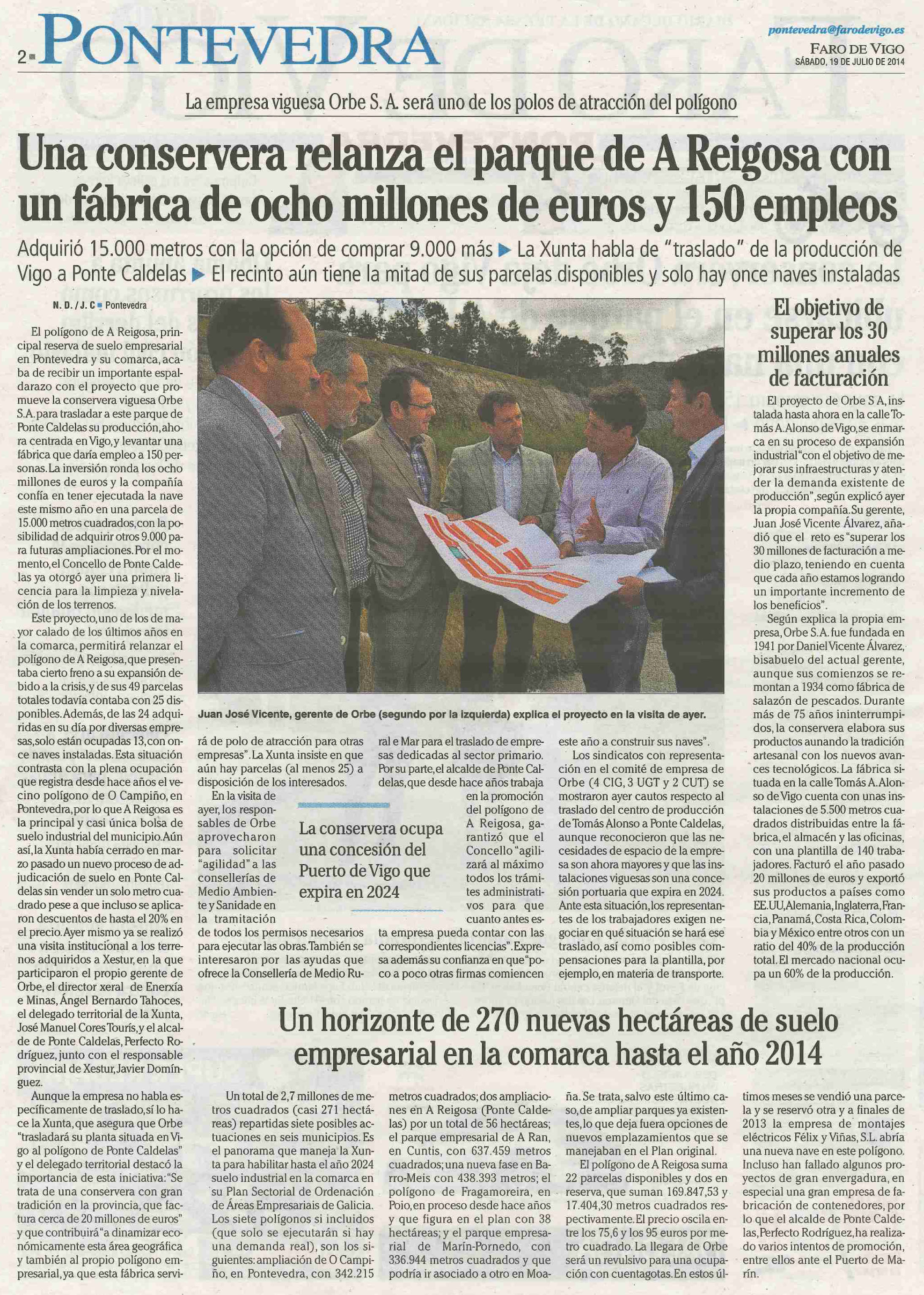 Ahora en esta pasada semana ha sido la conservera viguesa ORBE, S.A. la que ya ha hecho oficial la construcción de su fábrica de conservas también en el Parque Empresarial de A Reigosa con una inversión superior a los 8 millones de euros, después de varios años de conversaciones entre la empresa, el alcalde y Xestur, que por fin culminaron con la compra de la parcela y el anuncio ya oficial de su próxima instalación.