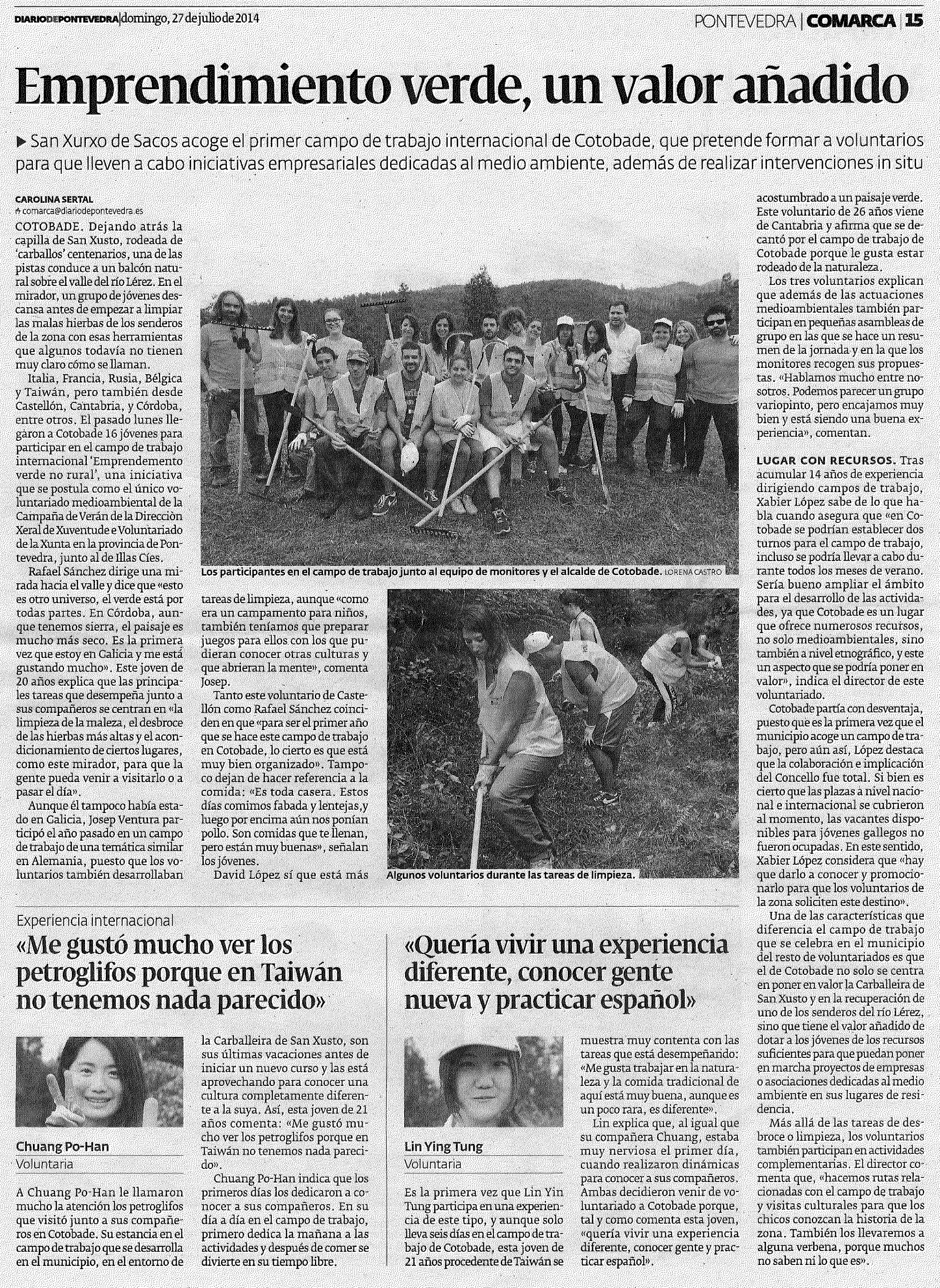 [Reportaxe de Carolina Sertal publicada no Diario de Pontevedra, 27 de xullo 2014]