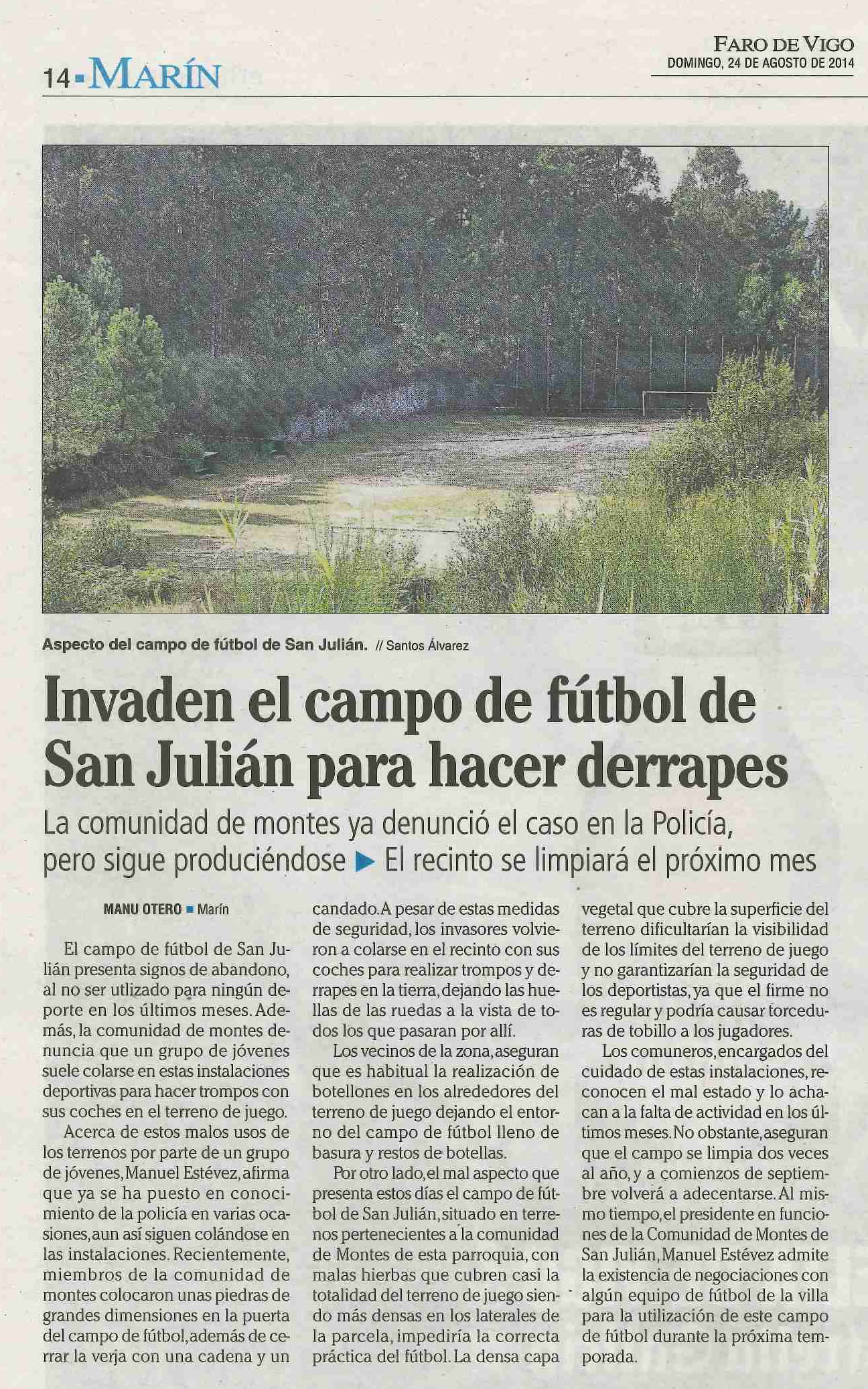 Faro de Vigo: “Invaden el campo de fútbol de San Julián para hacer derrapes“