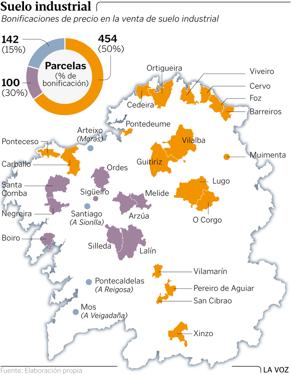 Como quien espolvorea sal por una ensalada, la política pública de suelo industrial seguida durante años en Galicia se ha singularizado por dar cobertura a todo el territorio. El resultado de esta estrategia, condicionada por contentar a alcaldes, es un modelo minifundista y con una muy baja calidad en las dotaciones. Es cierto que la crisis ha frenado la demanda. Y que zonas dinámicas que carecían de oferta, como la capital gallega, A Coruña o Vigo, disponen ahora de metros. Xestur, la empresa de la Xunta, acaba de sacar a concurso dos millones de metros cuadrados bonificados. De ellos, unos 588.000 situados en 142 parcelas, se corresponden con polígonos del eje atlántico: se trata de Santiago (A Sionlla), Ponte Caldelas (A Reigosa), Mos (A Veigadaña) y Arteixo (Morás). Pero el grueso del lote, casi un millón y medio de metros, que cuentan con descuentos en el precio de entre el 30 % y el 50 %, se hallan en áreas de mucha menor demanda y que ya se encontraron con problemas de ocupación mucho antes de la crisis.