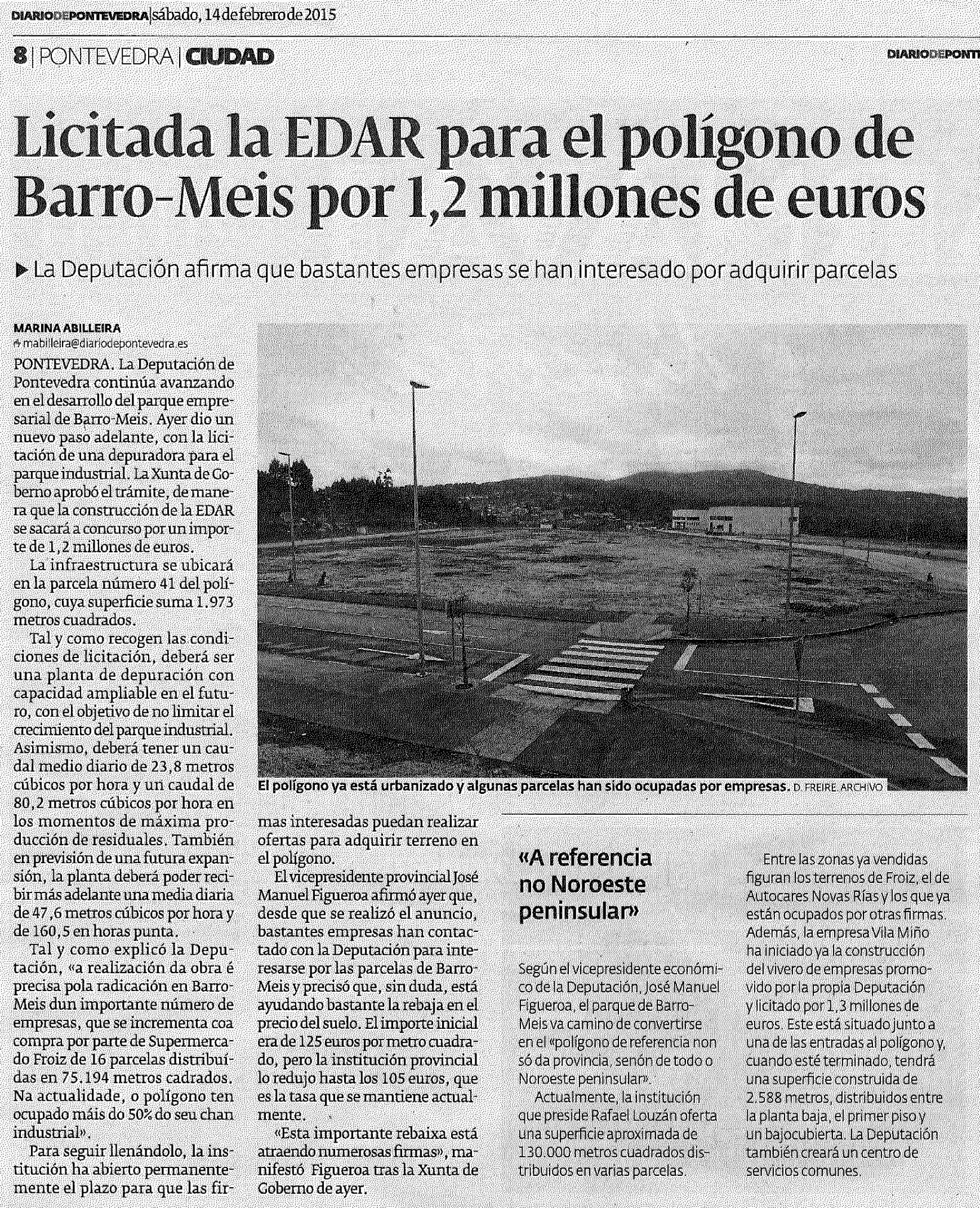 Licitada la EDAR para el polígono de Barro-Meis por 1,2 millones de euros