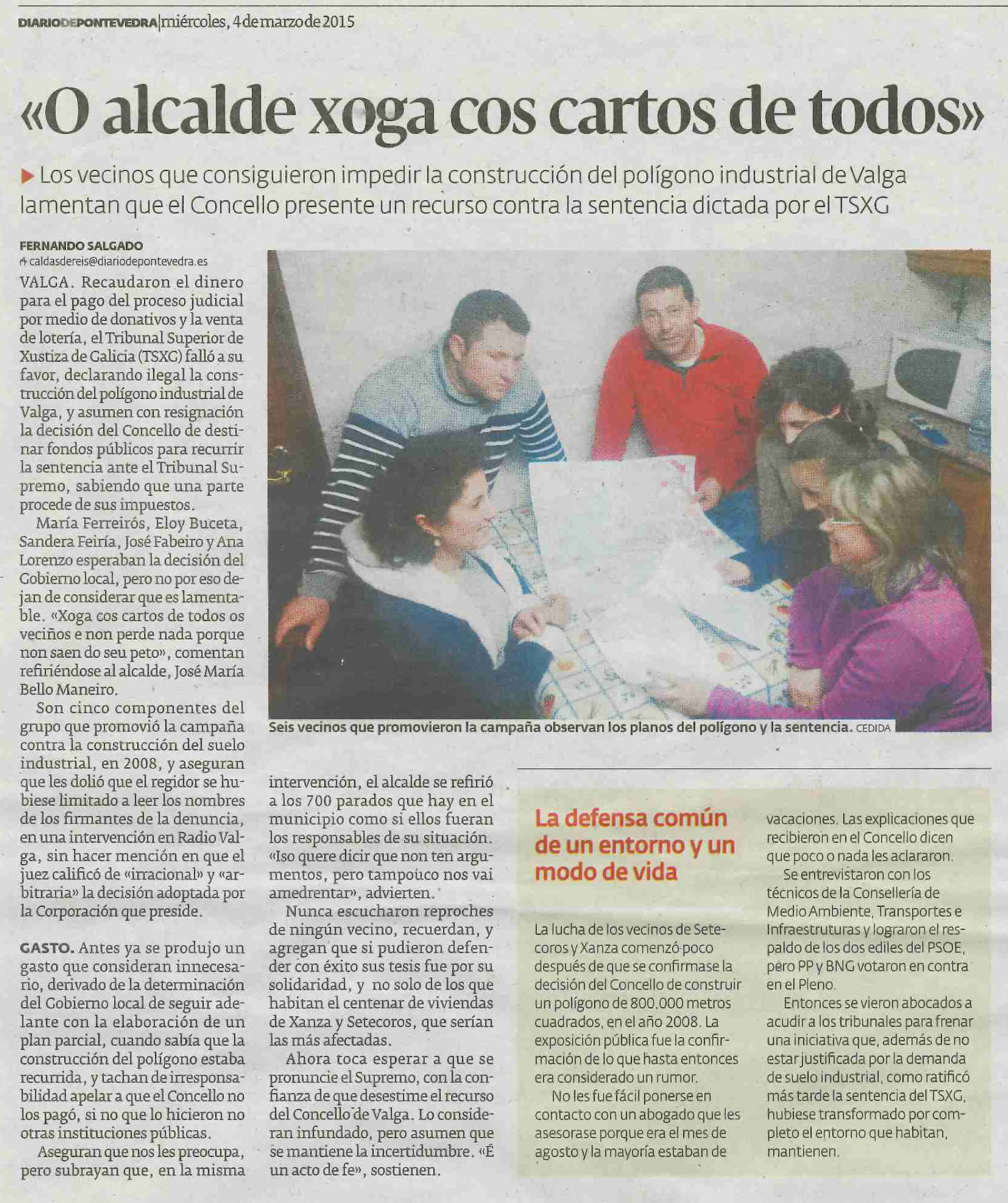 Los vecinos que consiguieron impedir la construcción del polígono industrial de Valga lamentan que el Concello presente un recurso contra la sentencia dictada por el TSXG