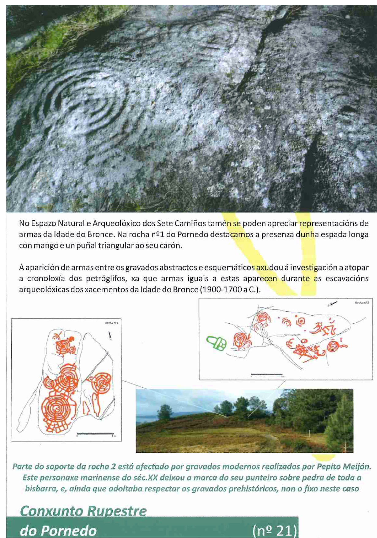 Os materiais que seguen proceden do catálogo-guía “Espazo Natural e Arqueolóxico dos Sete Camiños”. Trátase dos contidos ligados ao ámbito territorial do monte veciñal de San Xulián, na zona do Monte Pituco (Pornedo).