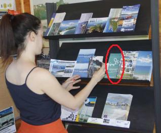 Reproducimos a continuación a foto en color, tomada da web do xornal, na que se observa que hai distintos tipos de folletos informativos, montonciños con varios exemplares de cada e –curiosamente, casualmente– aparece UN ‘triste’ folleto do Espazo Natural e Arqueolóxico dos Sete Camiños no medio de toda esa oferta.