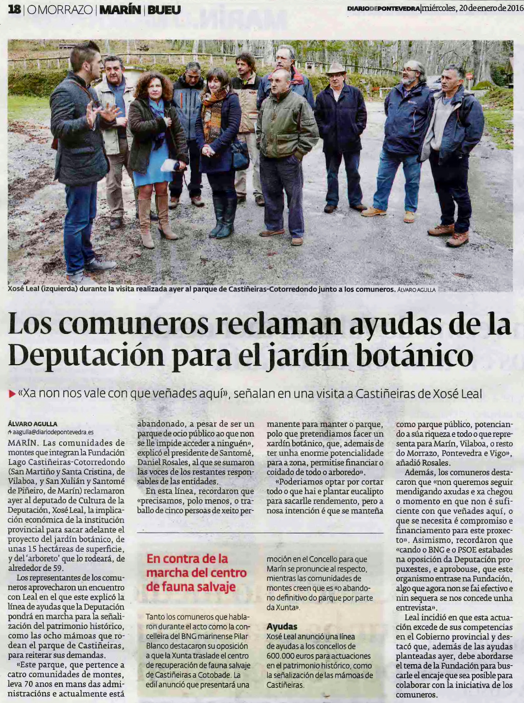 O resultado do encontro foi “decepcionante”, tal e como o calificou o presidente dos comuneiros de San Xulián, Manuel Estévez. Tal vez porque os promotores da Fundación do Lago de Castiñeiras agardaban unha mención explícita de Xosé Leal sobre o compromiso que adquirira a Deputación de Pontevedra durante o anterior mandato provincial -co voto a favor de todos os grupos- para apostar polo desenvolvemento da Fundación levando adiante os seus obxectivos de mellora urxente deste espazo natural e de posta en marcha do proxecto de creación dun xardín botánico.