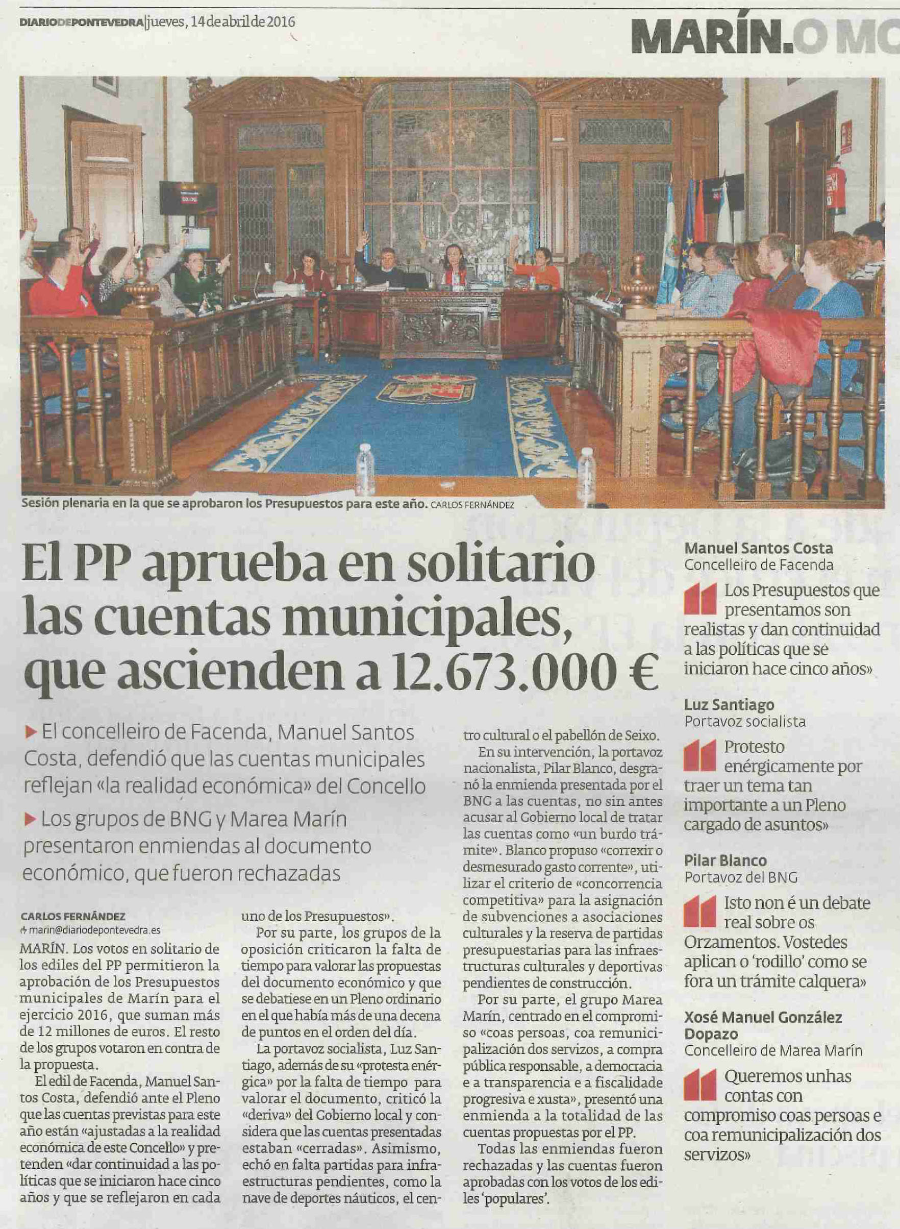 Los grupos de BNG y Marea Marín presentaron enmiendas al documento económico, que fueron rechazadas