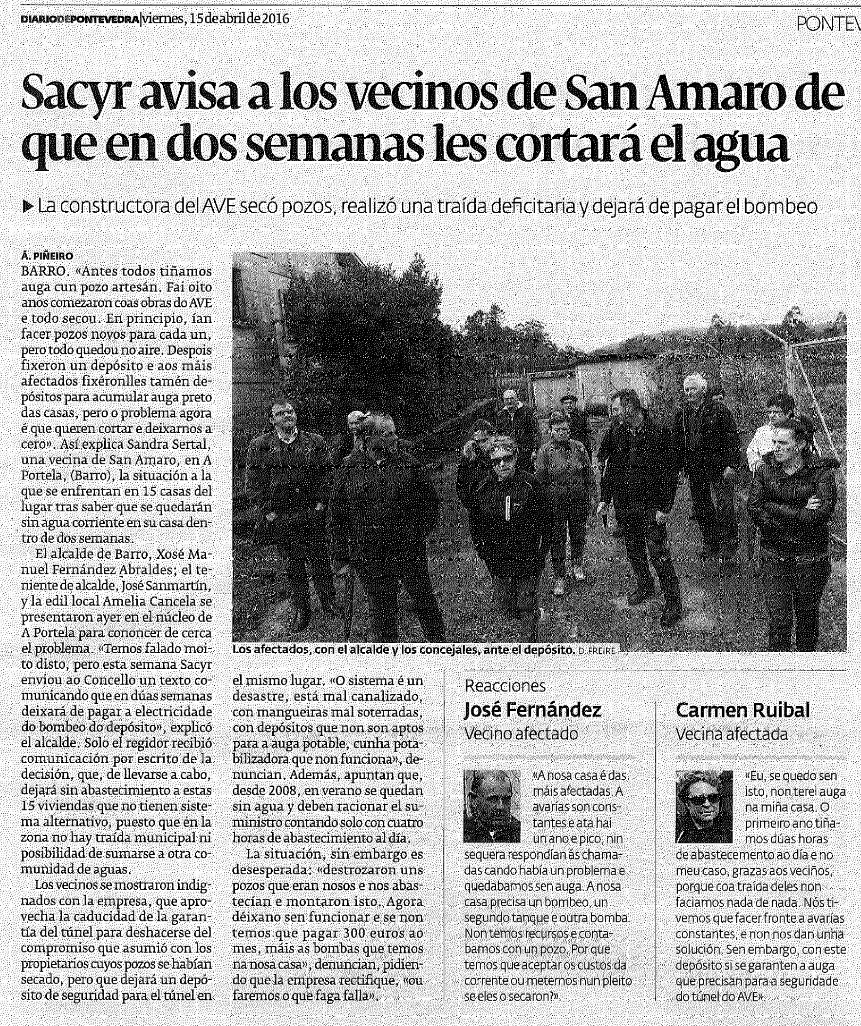 “…La situación, sin embargo, es desesperada: “destrozaron uns pozos que eran nosos e nos abastecían e montaron isto. Agora déixano sen funcionar e se non temos que pagar 300 euros ao mes, máis as bombas que temos na nosa casa”, denuncian, pidiendo que la empresa rectifique, “ou faremos o que faga falla”.