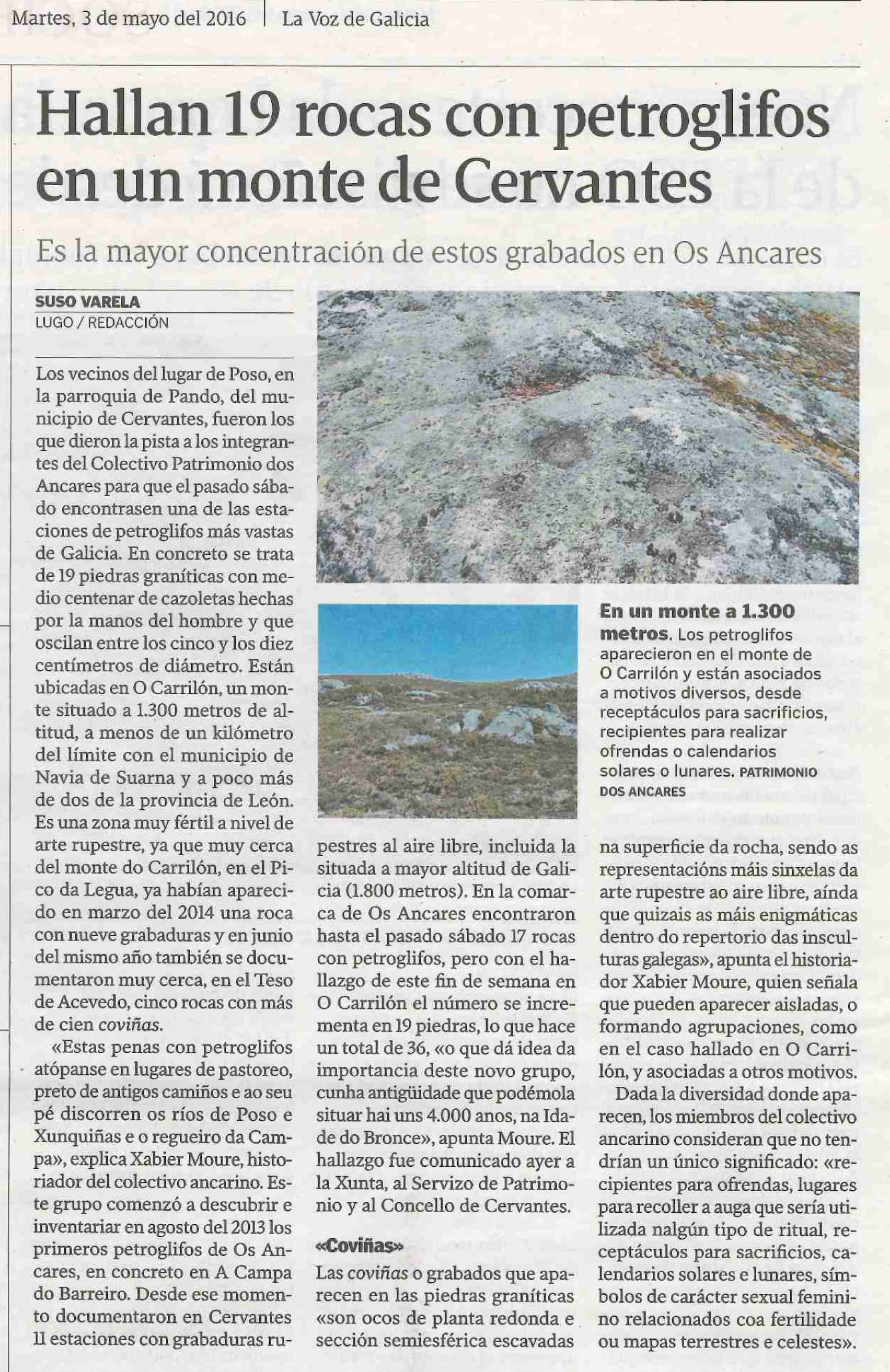 «Estas penas con petroglifos atópanse en lugares de pastoreo, preto de antigos camiños e ao seu pé discorren os ríos de Poso e Xunquiñas e o regueiro da Campa», explica Xabier Moure, historiador del colectivo ancarino”.