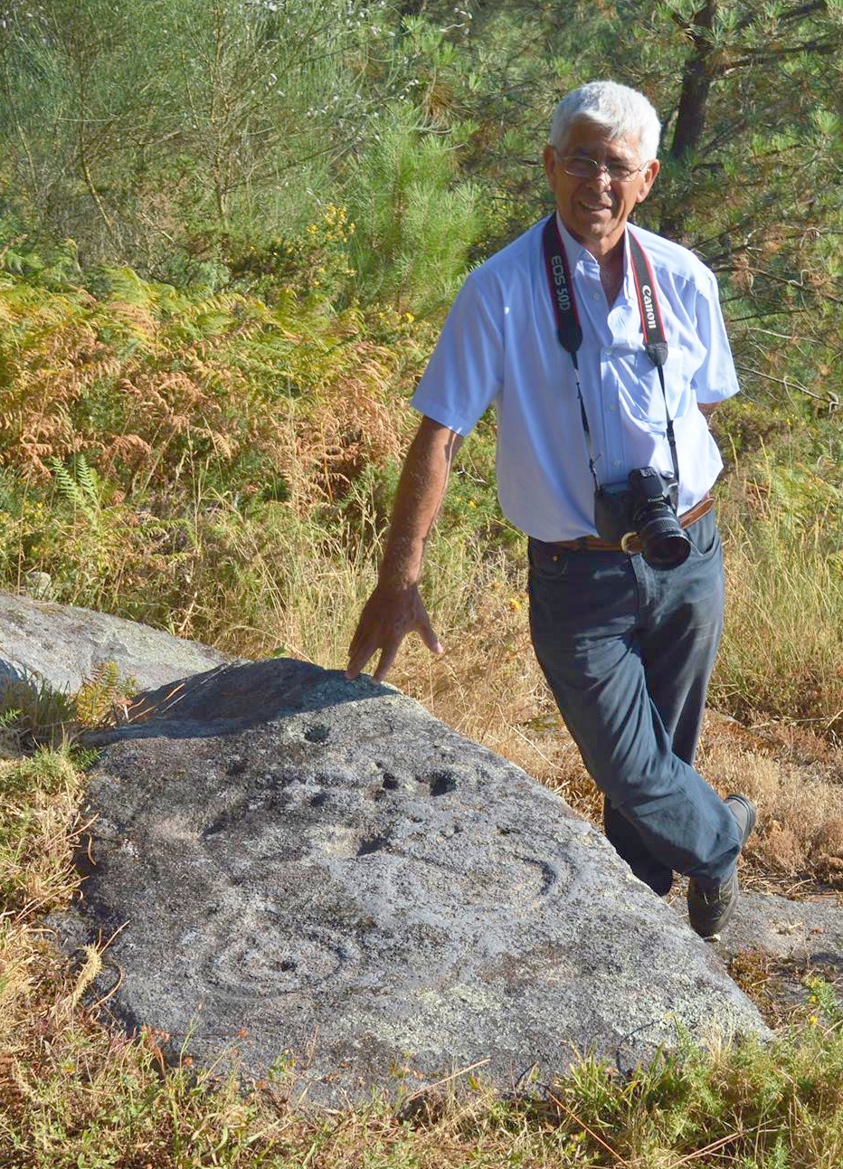 [Antonio Costa, no petroglifo de Pinal de Caeiro ‘O ciclista’]