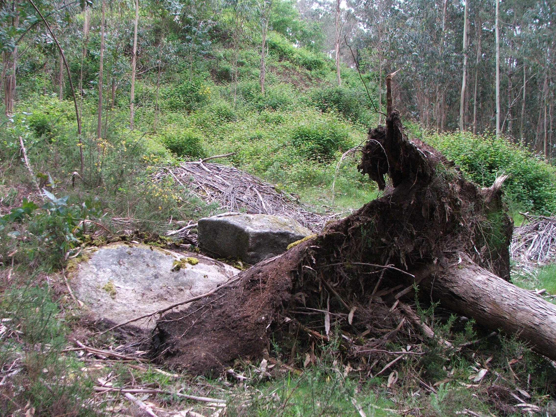 A Carrasca, círculos concéntricos descubertos baixo a raíz dun eucalipto