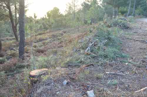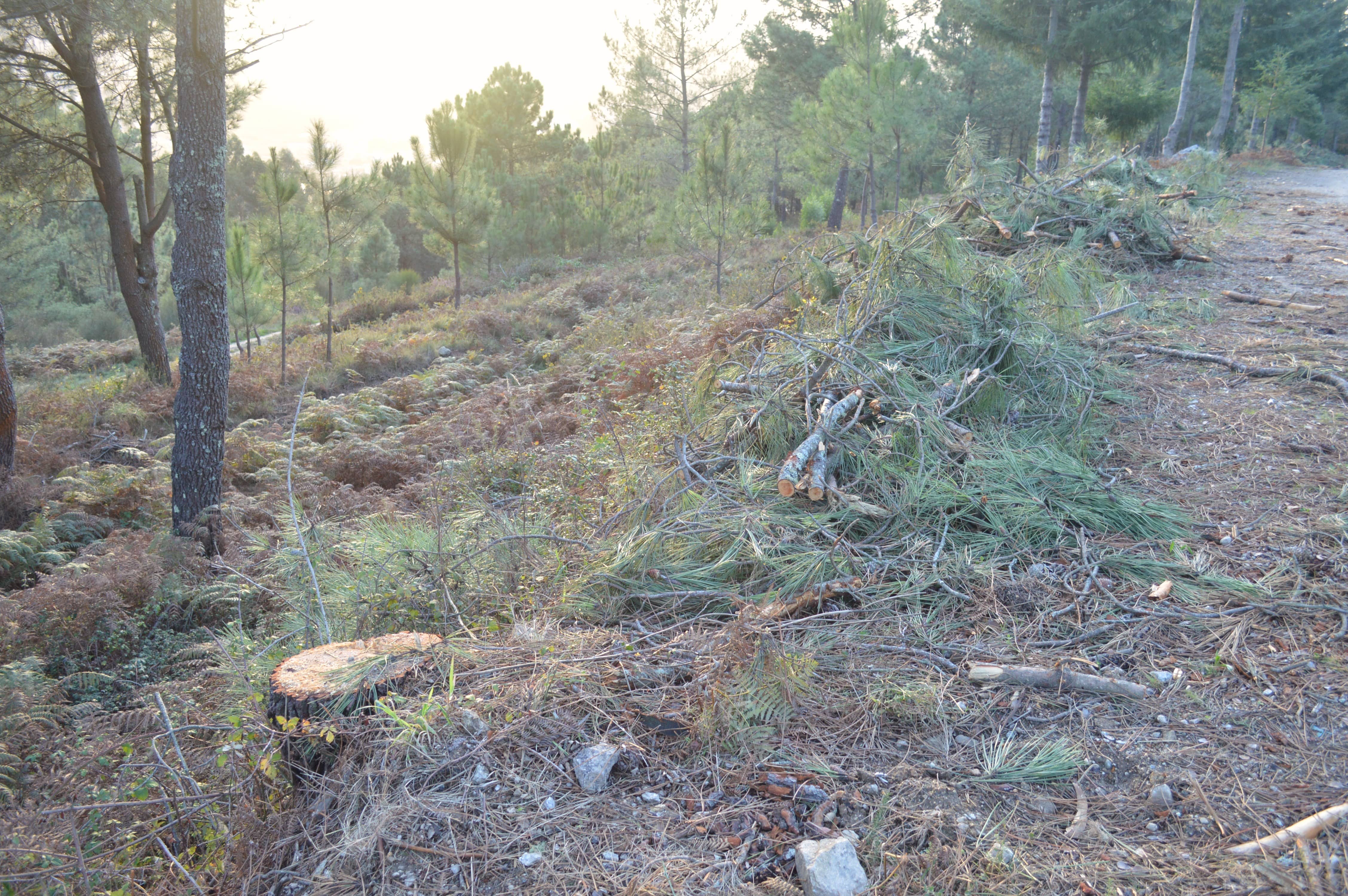 A SERRA MECÁNICA PASOU (E ARRASOU) POLA PISTA DO PORNEDO » Piñeiros talados na pista forestal do Monte Pituco