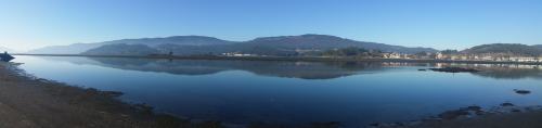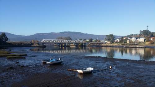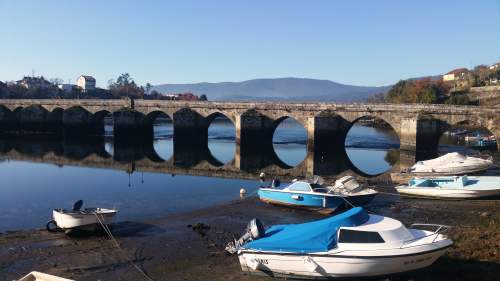 Vista da ponte medieval de Pontesampaio dende A Xunqueira, pertencente ao concello de Pontevedra