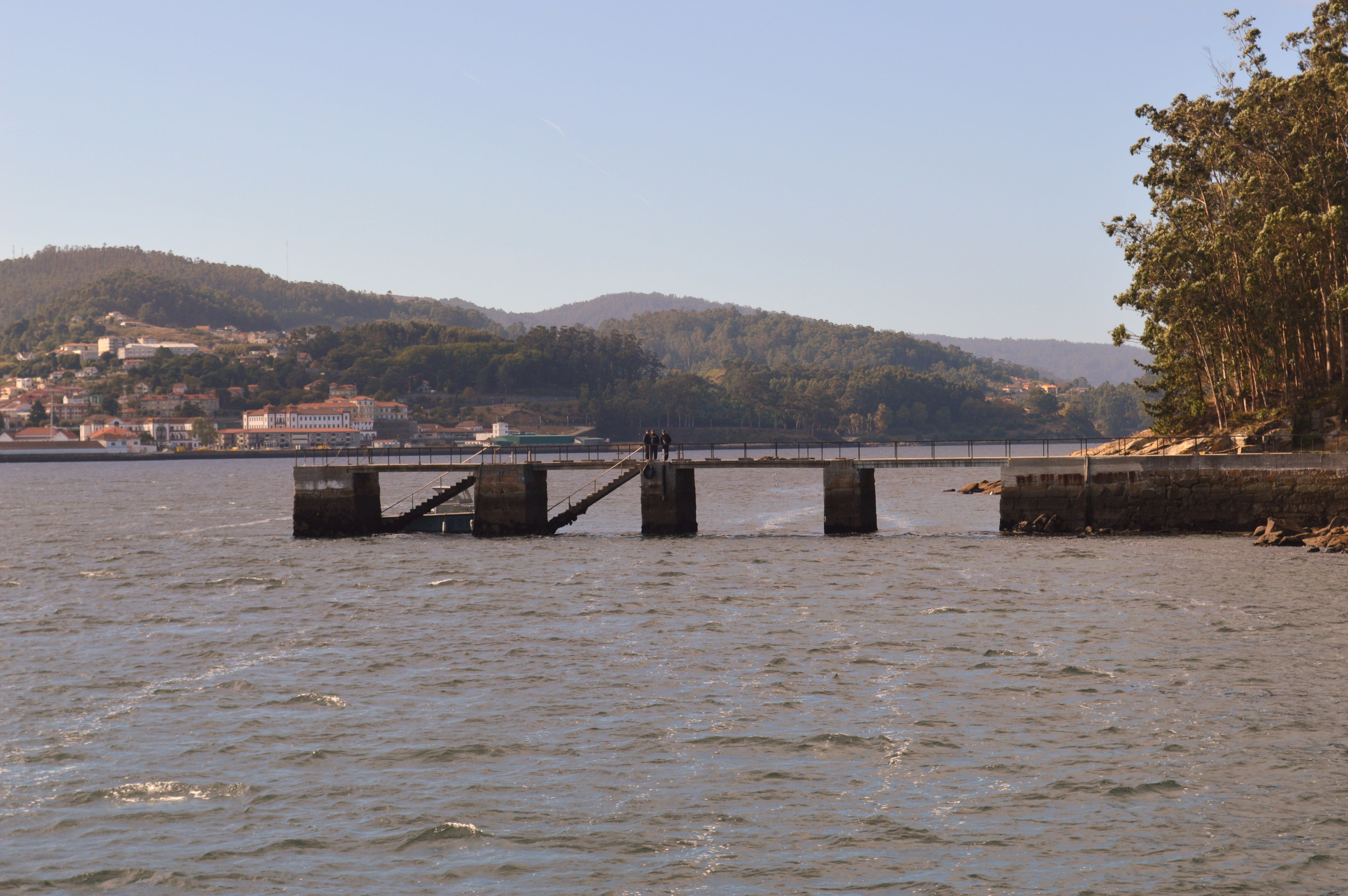 Persoal da Escola Naval Militar agardando a chegada do catamarán para supervisar a visita pola illa