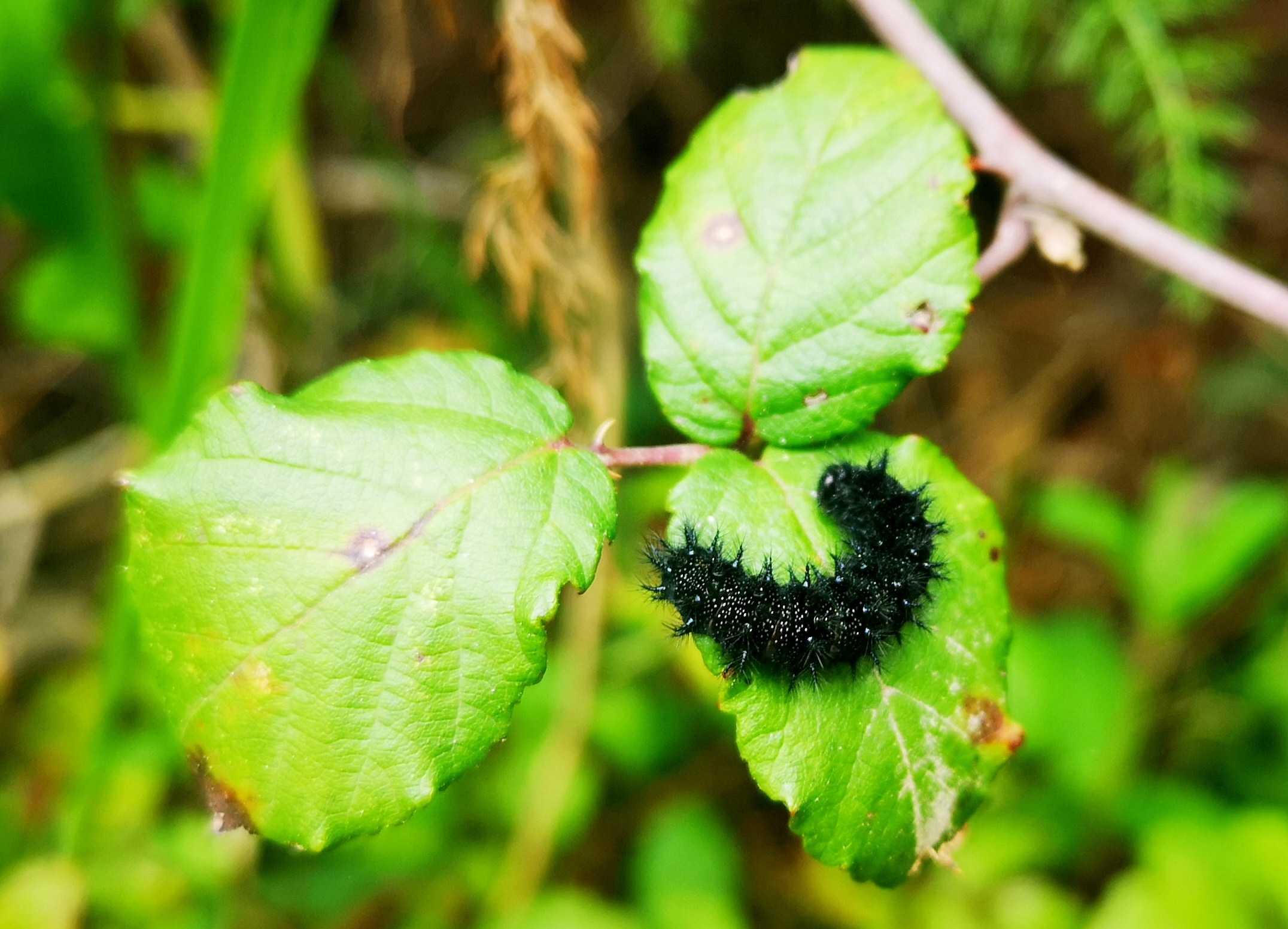 Eiriuga de Inachis io (bolboreta pavo real)