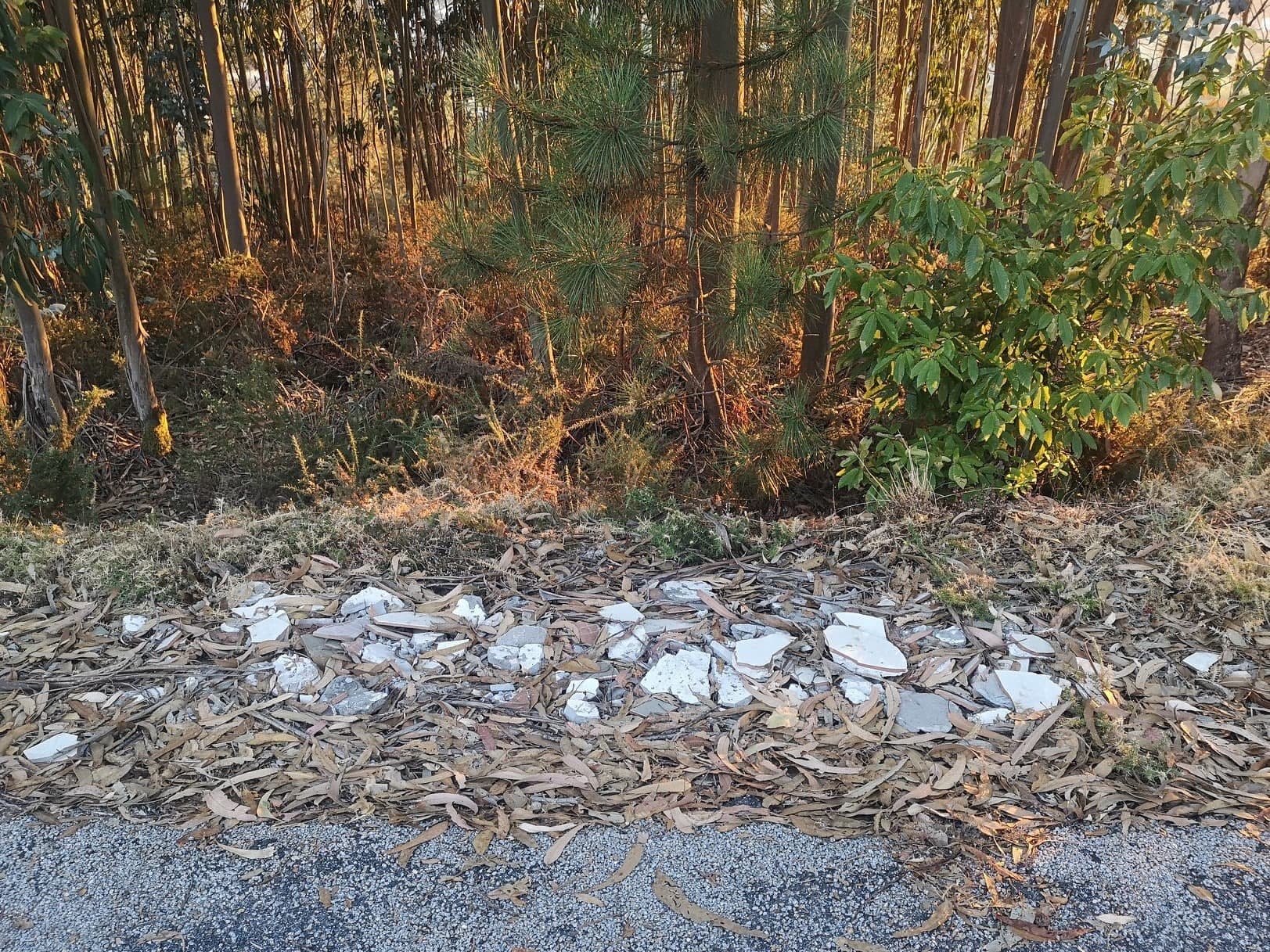 Lixo e residuos na pista de servizo da Variante de Marín, preto do xacemento rupestre de Pinal de Caeiro