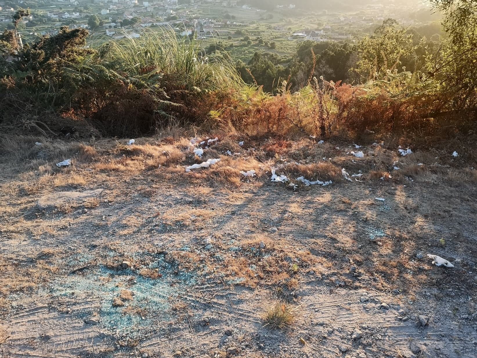 Lixo e residuos na pista de servizo da Variante de Marín, preto do xacemento rupestre de Pinal de Caeiro