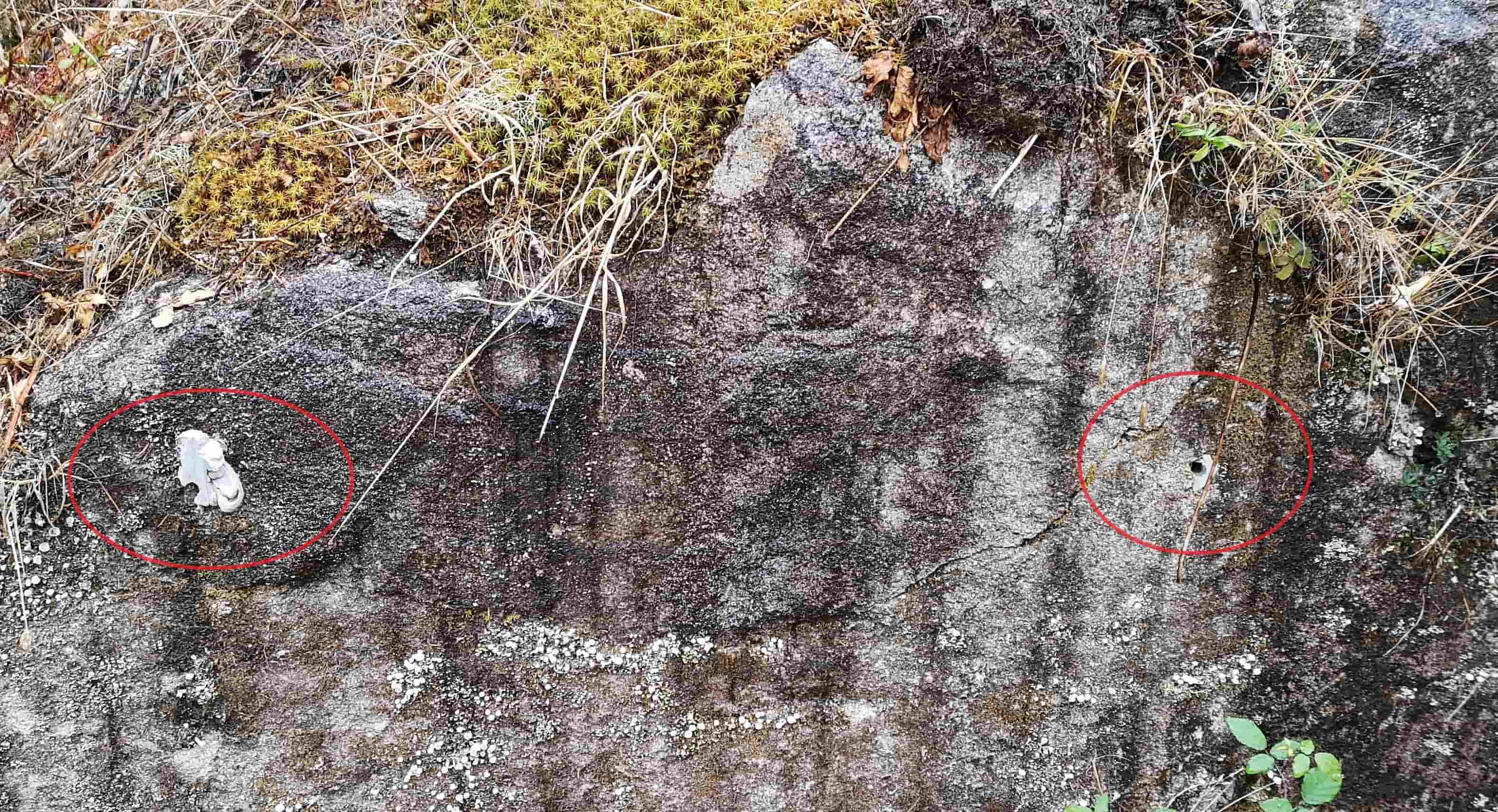 Marcas da sinalización no inicio da pista forestal do Pornedo, tamén retirada