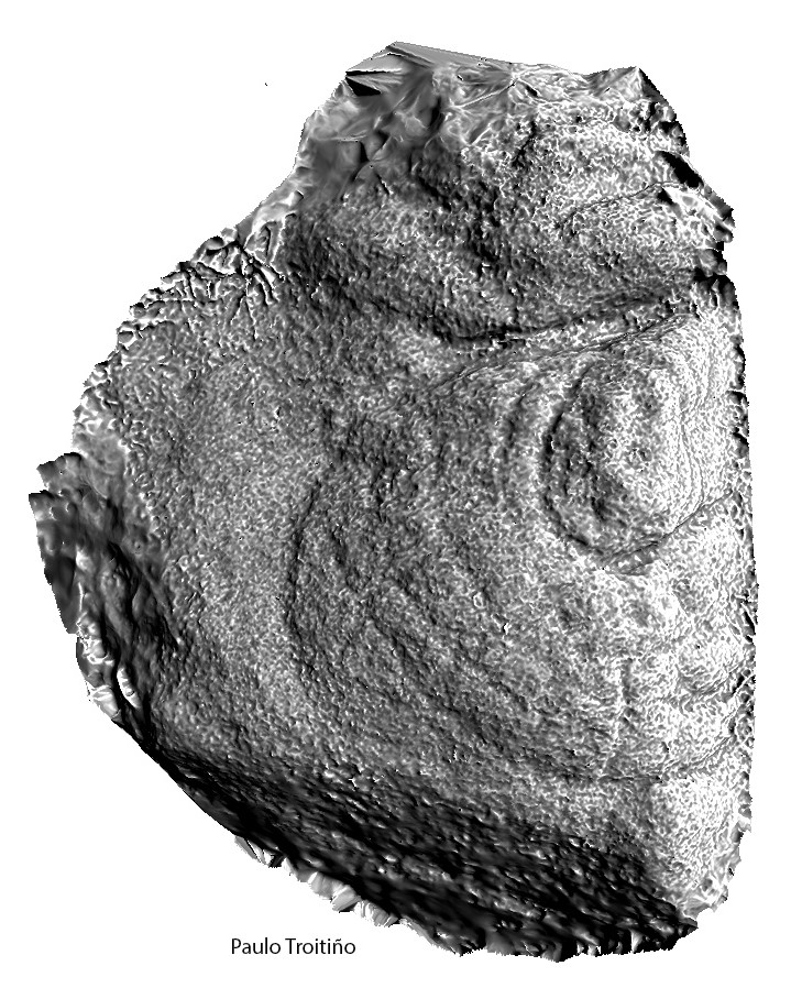 Os gravados descubertos representan cazoletas ou coviñas de distintos tamaños e pequenas combinacións de círculos con coviña central, mais cabe a posibilidade de que se trate dun petróglifo distinto ao referido por Ramón Sobrino, que estaba descrito como unha “pedra cunha ringleira de cazoletas”.