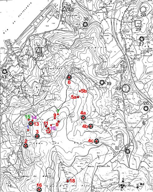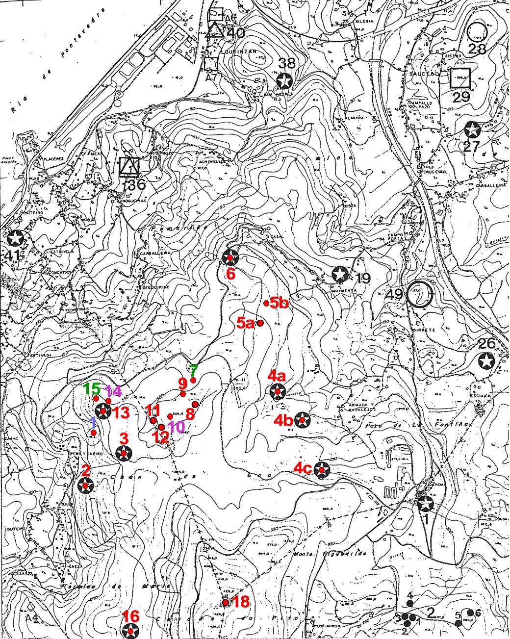 Arte Rupestre » Mapa dos elementos que configurarían o Espazo Natural e Arqueolóxico dos Sete Camiños