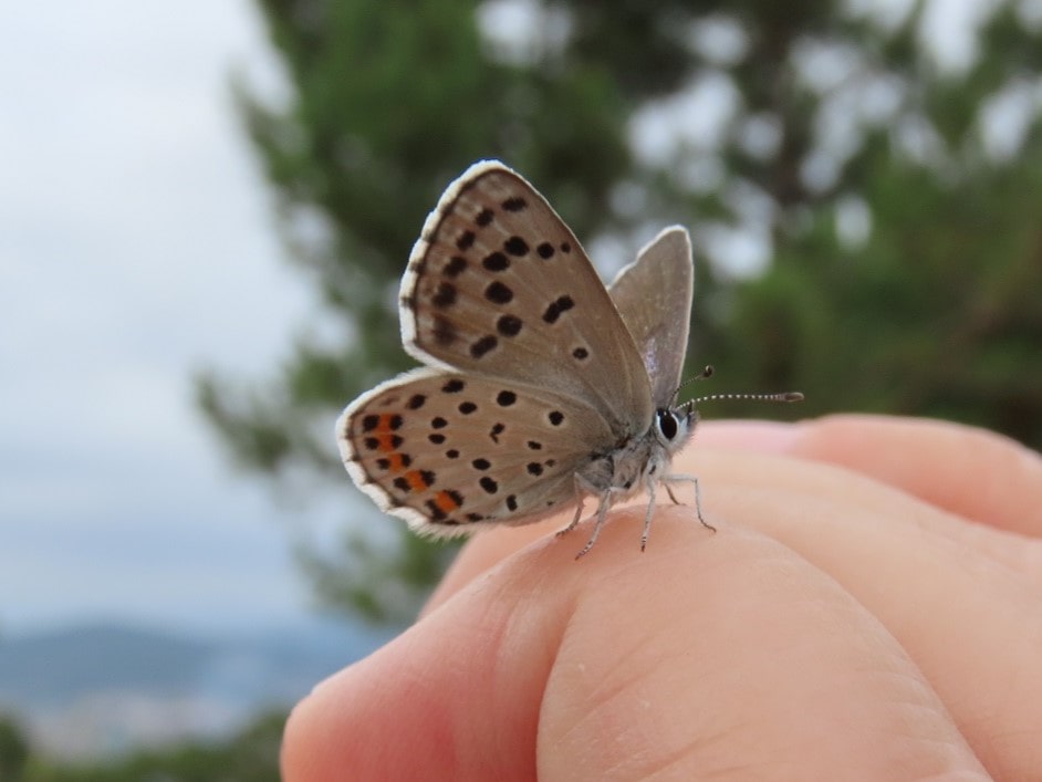 Cara inferior de ás de femia de niña (Plebejus argus). Foto de Cándido Martínez.