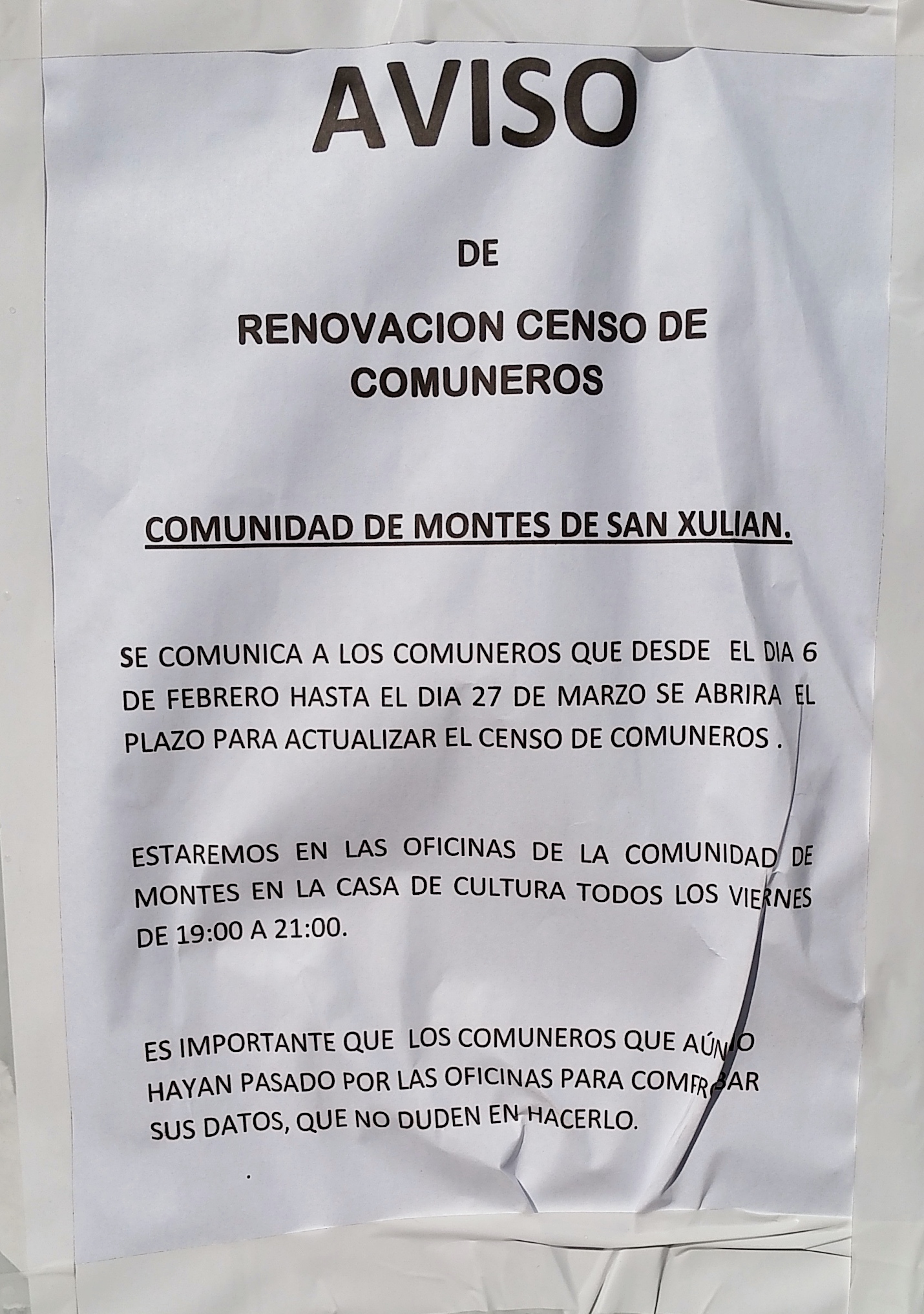 O caso é que a directiva da Comunidade de Montes que preside Manuel Estévez tralas problemáticas votacións do mes pasado, ten convocado un novo proceso -digamos o enésimo, porque xa lle perdemos a conta- de regularización do censo de comuneiros e comuneiras.